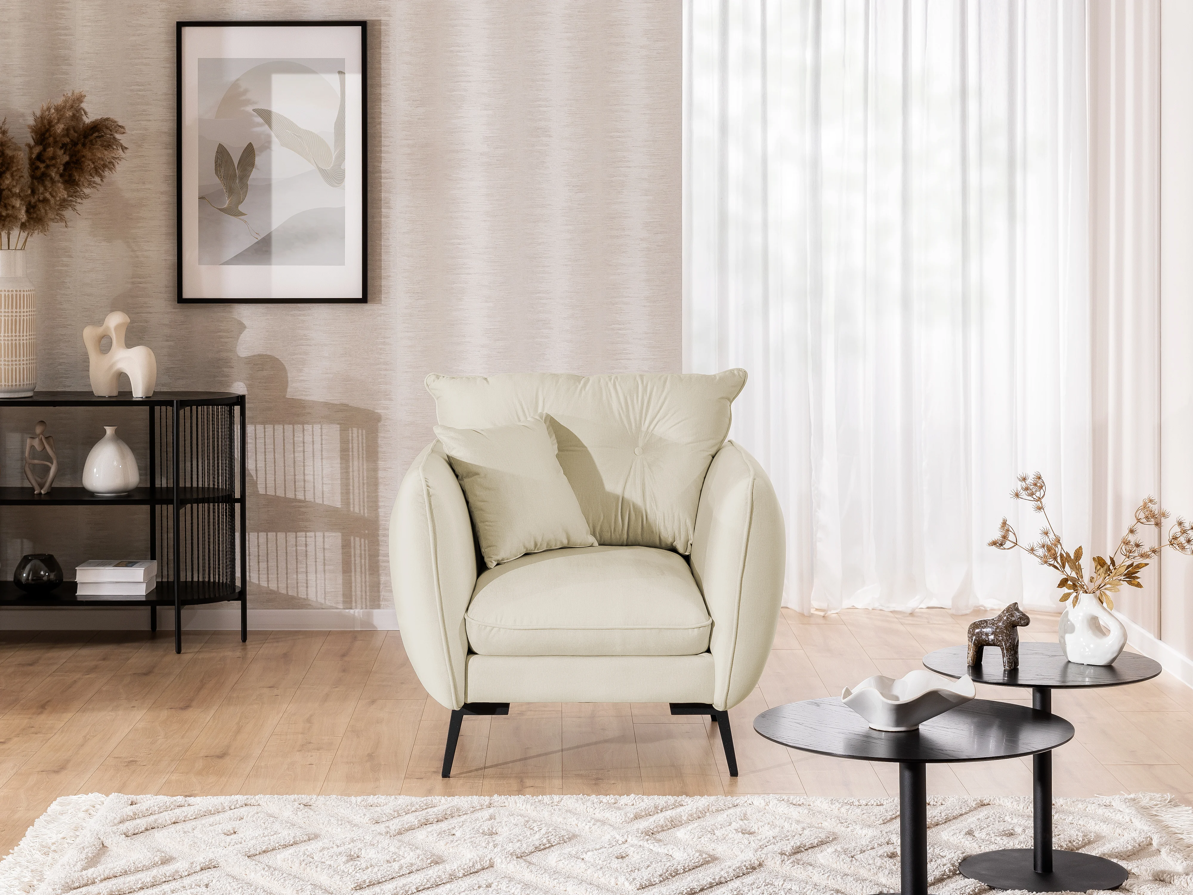 Fauteuil en tissu avec de hauts pieds en métal noir Nordloft