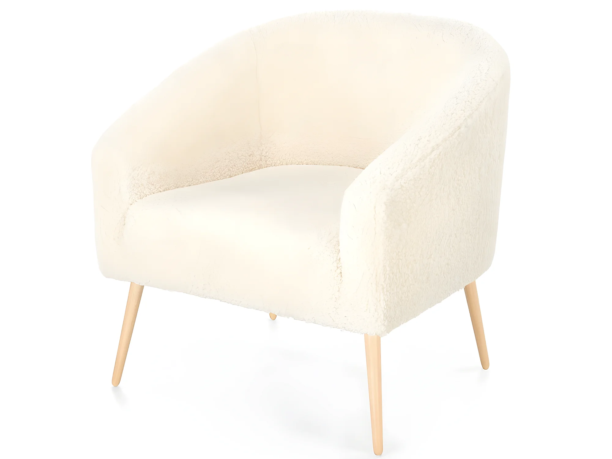 Fauteuil en tissu bouclé avec pieds en bois massif ARMELLE 2
