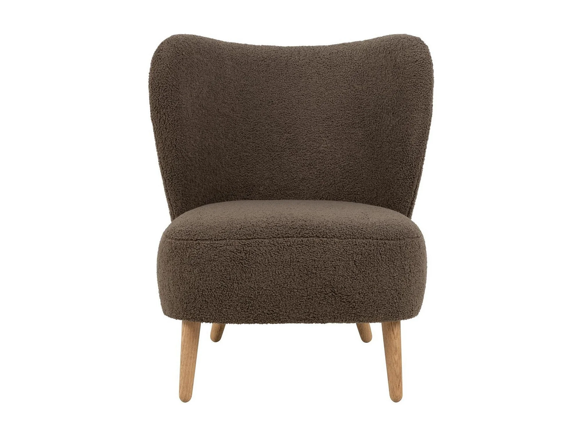 Fauteuil en tissu bouclette marron et pieds en bois - EROS
