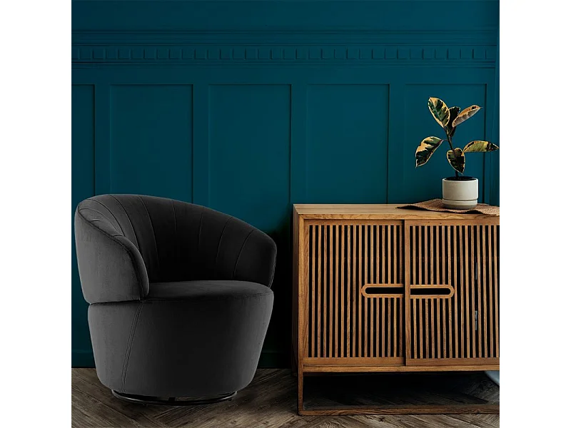 Fauteuil rond pivotant 360° velours gris anthracite moderne - COROLLA