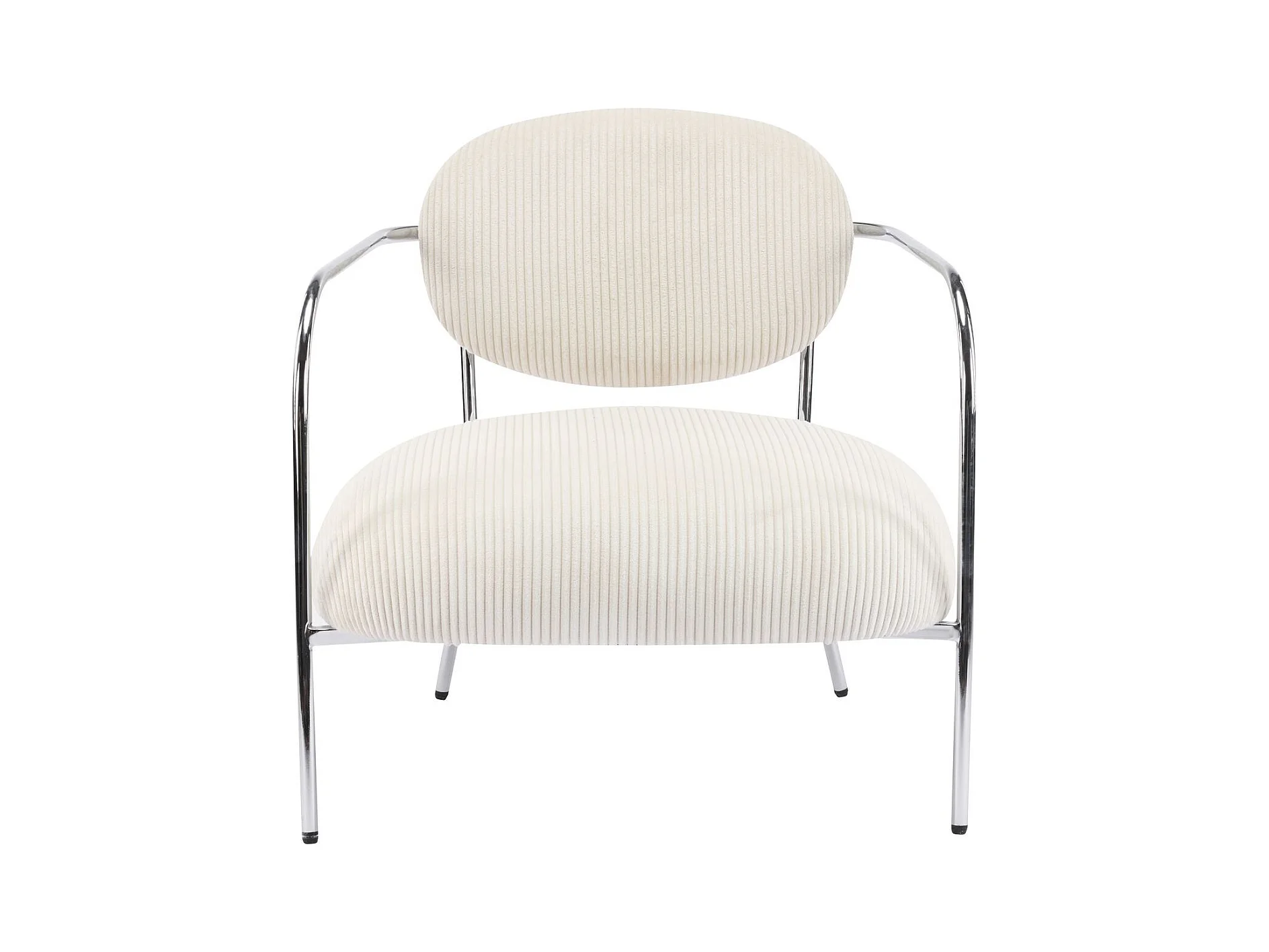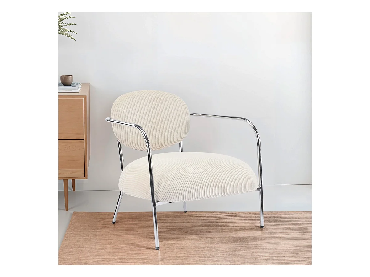 Fauteuil en velours cotelé beige et piètement chromé - Léon