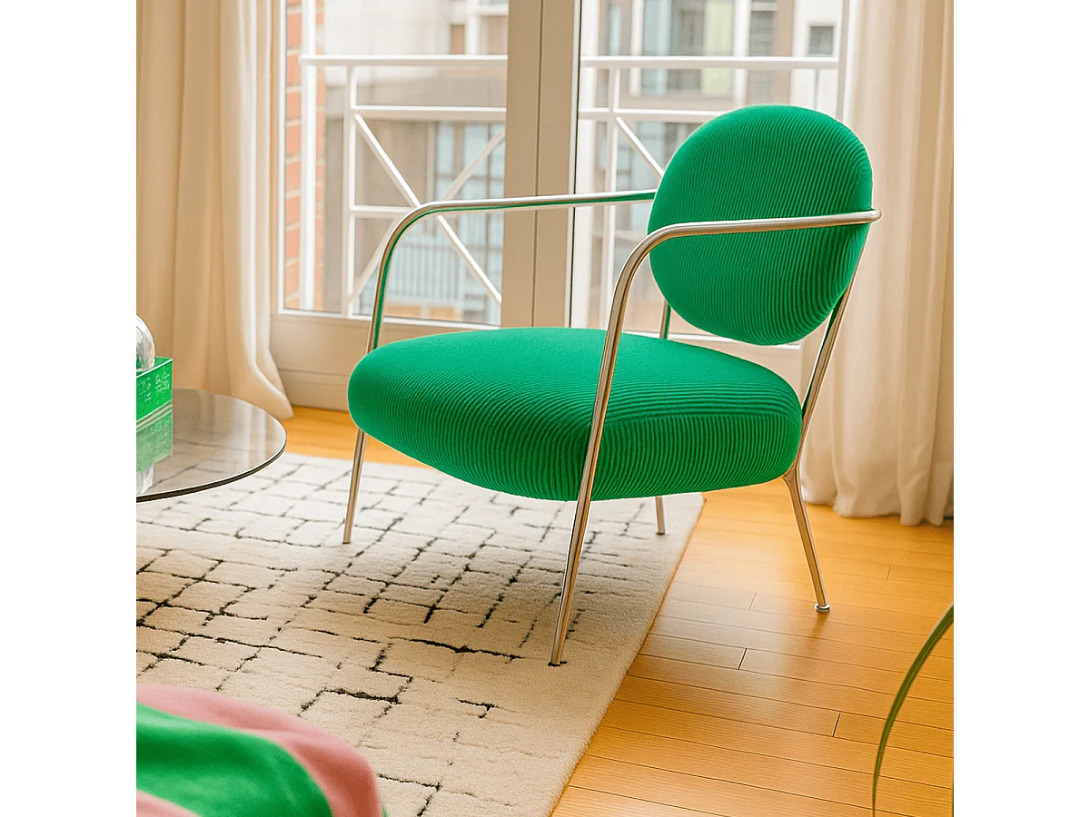Fauteuil en velours côtelé vert électrique et piètement chromé - Léon