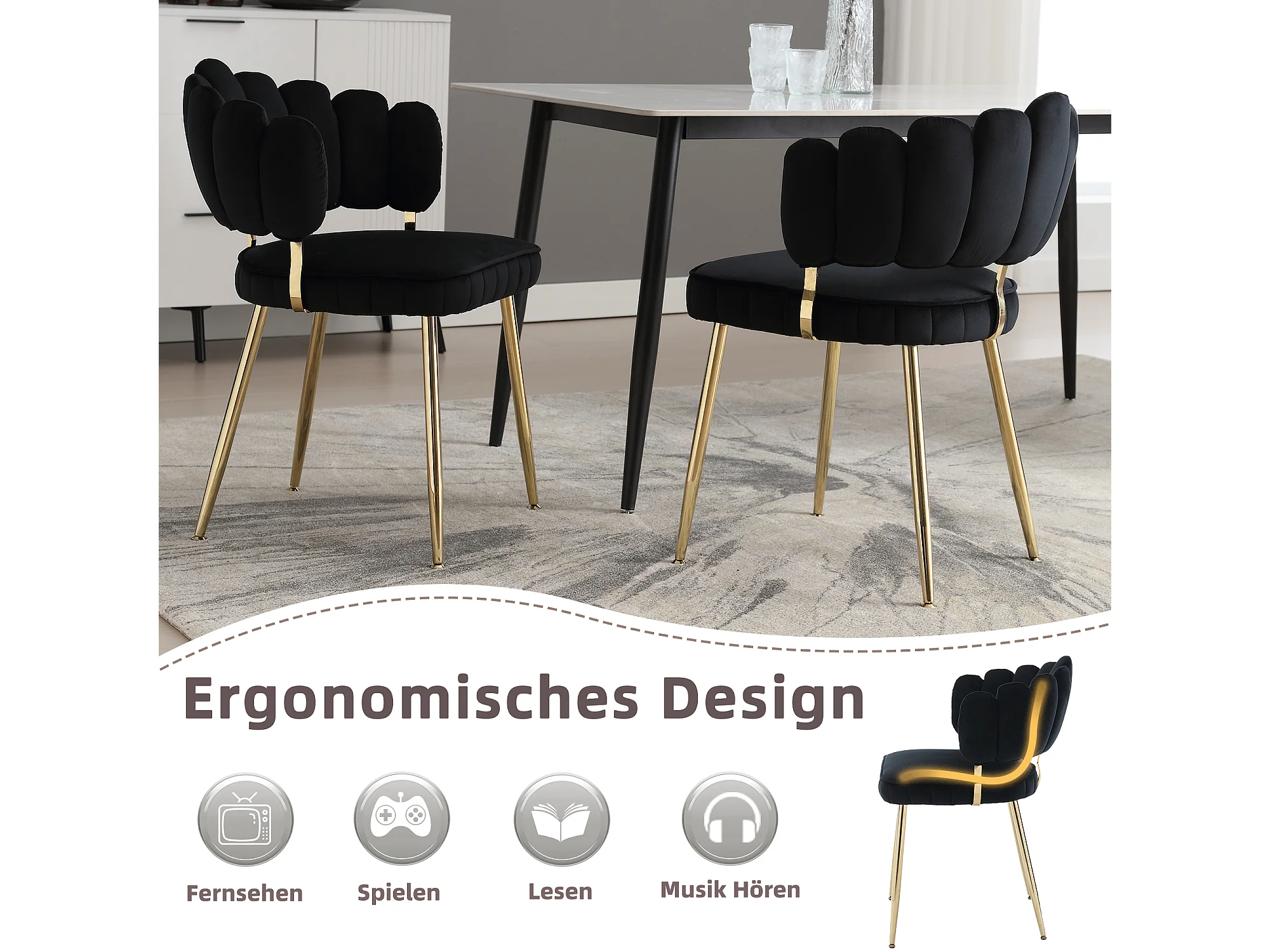 Fauteuil en velours moderne avec dossier fleuri et pieds métalliques, noir (58x56x78cm)