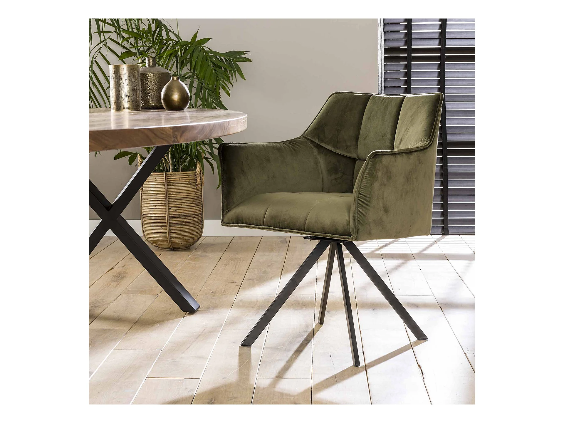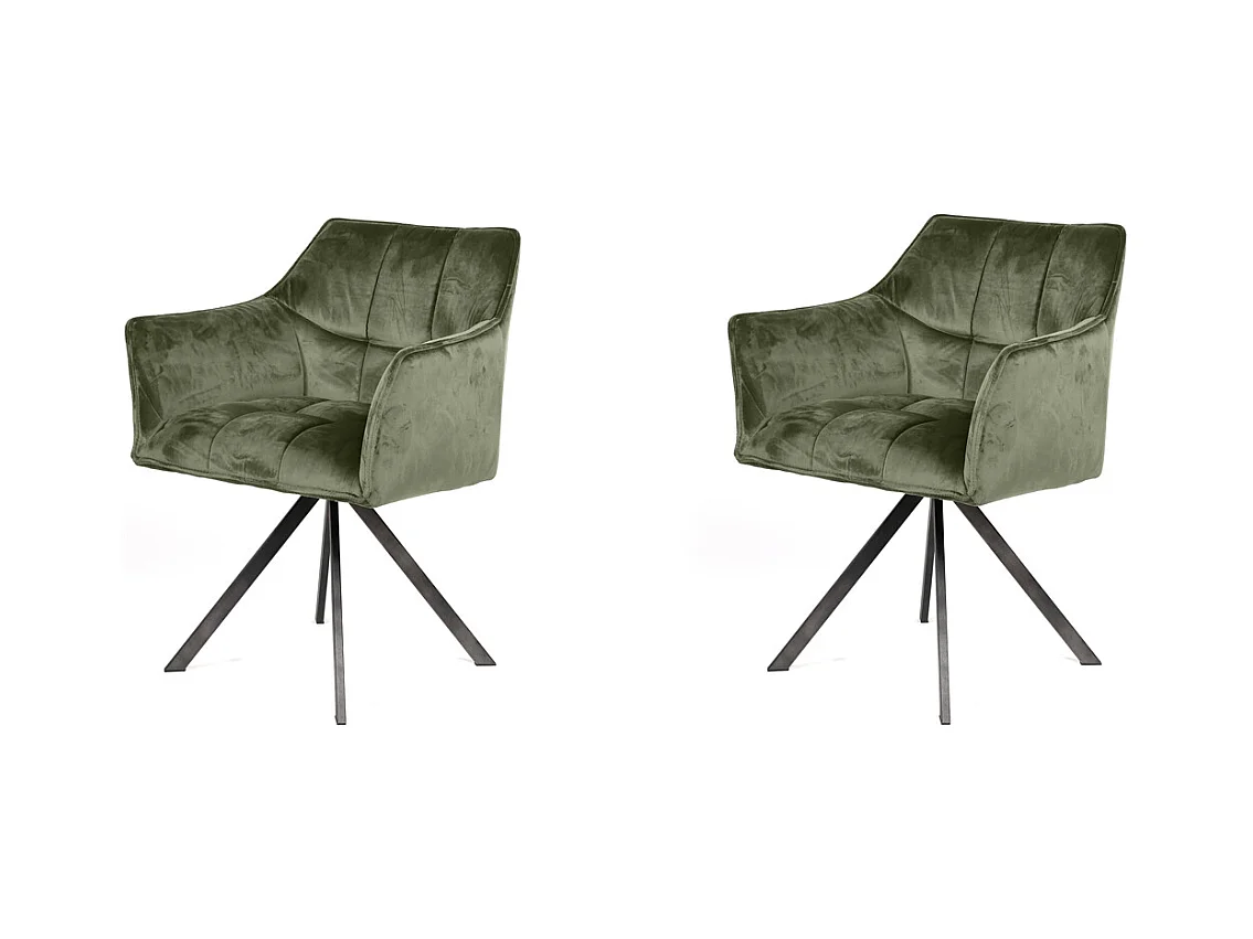 Fauteuil en velours - Vert - Pivotant - 2 pièces