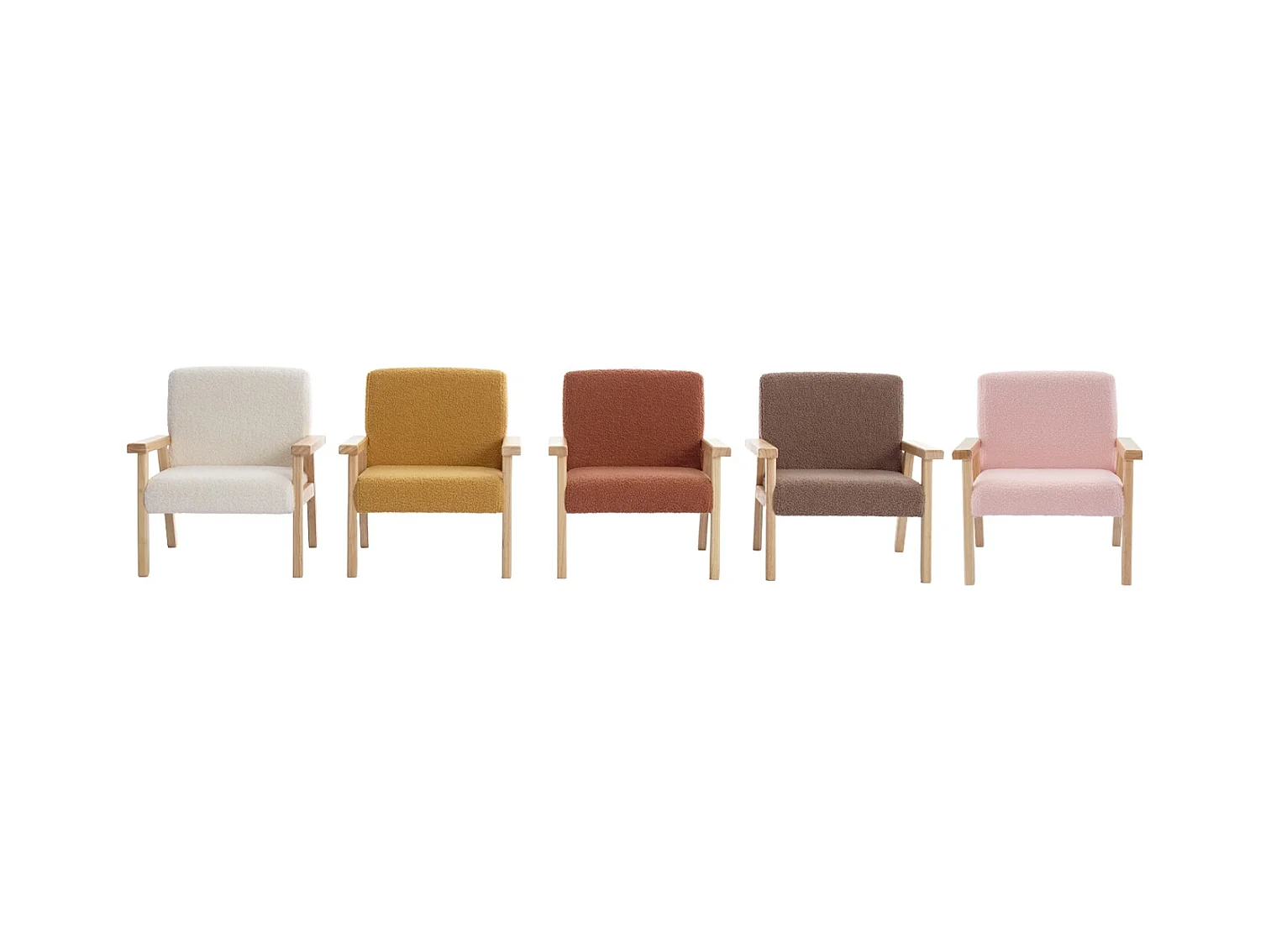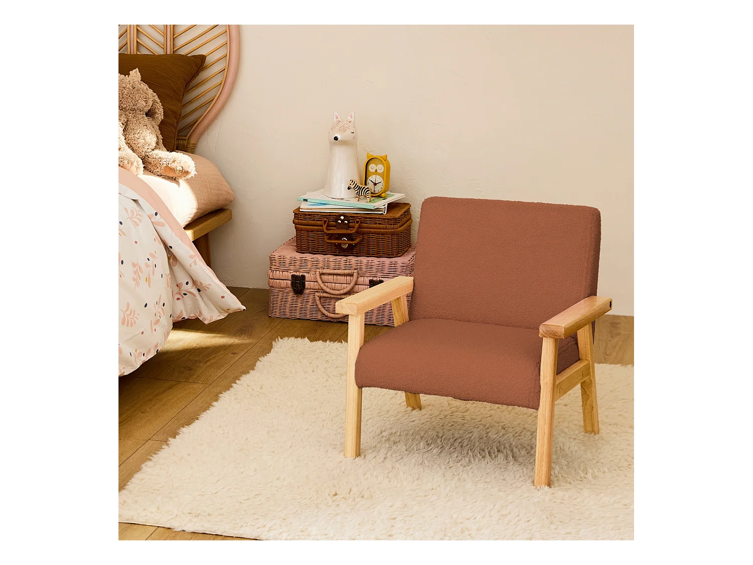 Fauteuil enfant en bois et tissu bouclette terracotta. ISAK L 47 x P 43.5 x H 50cm