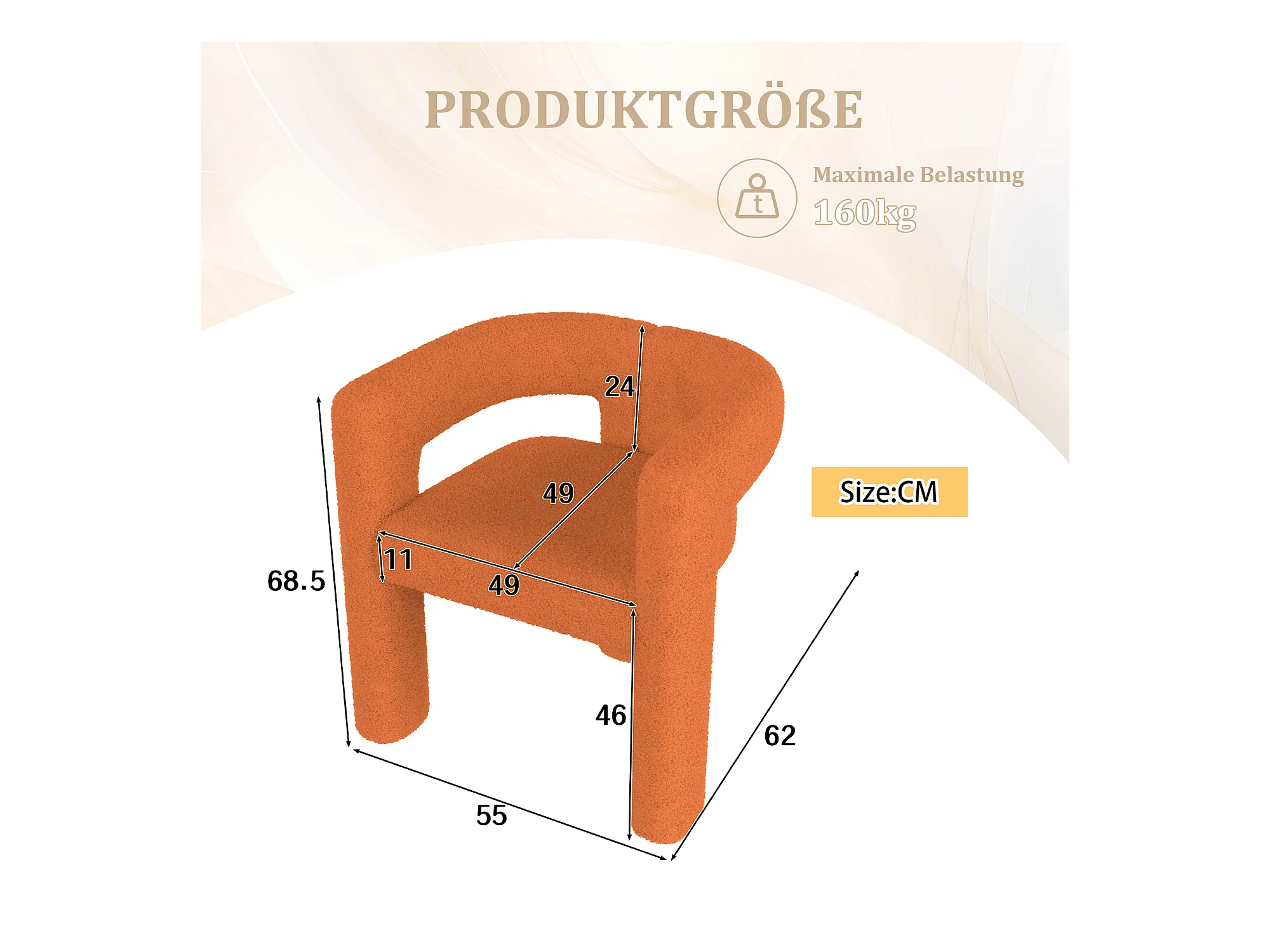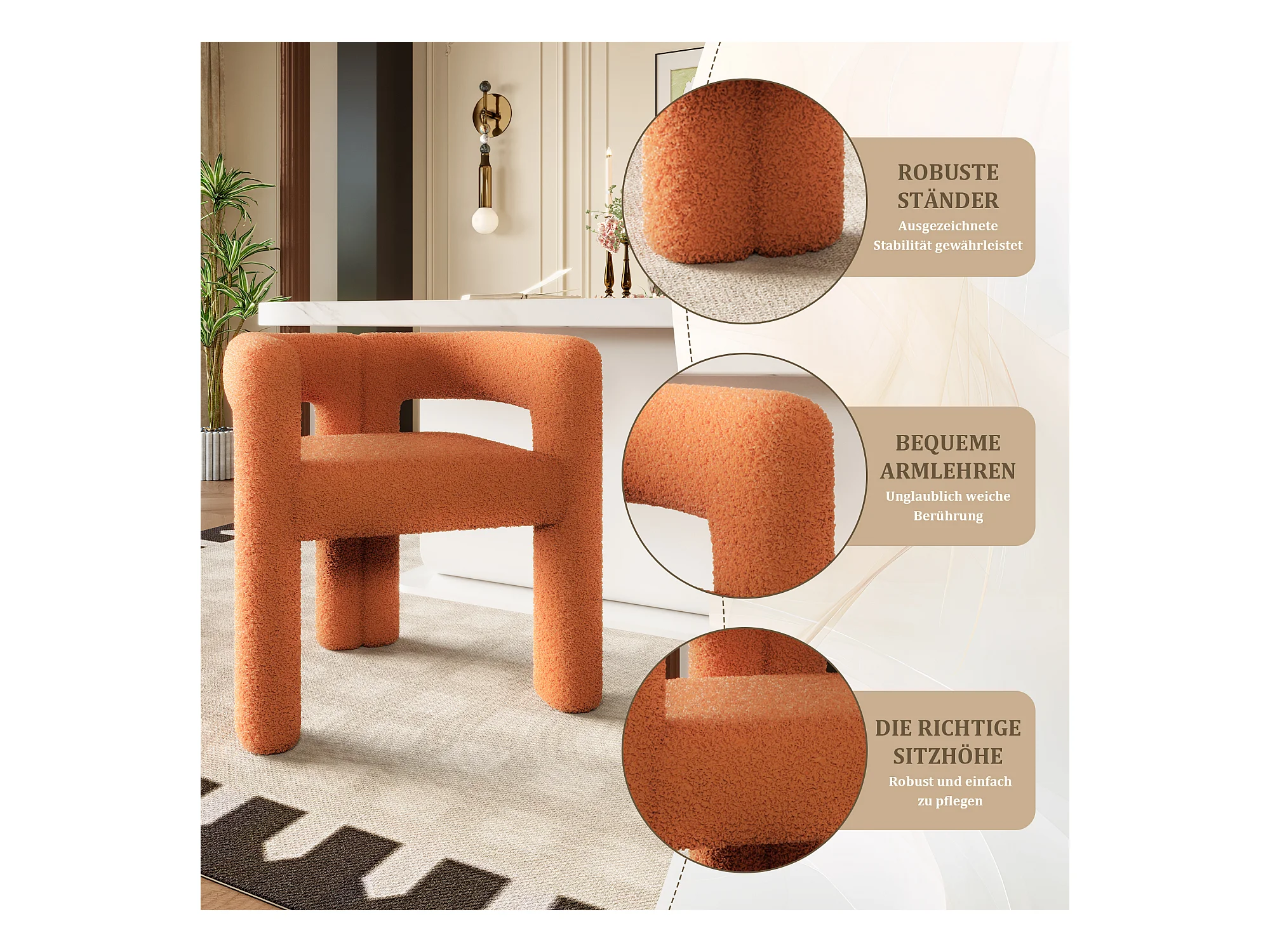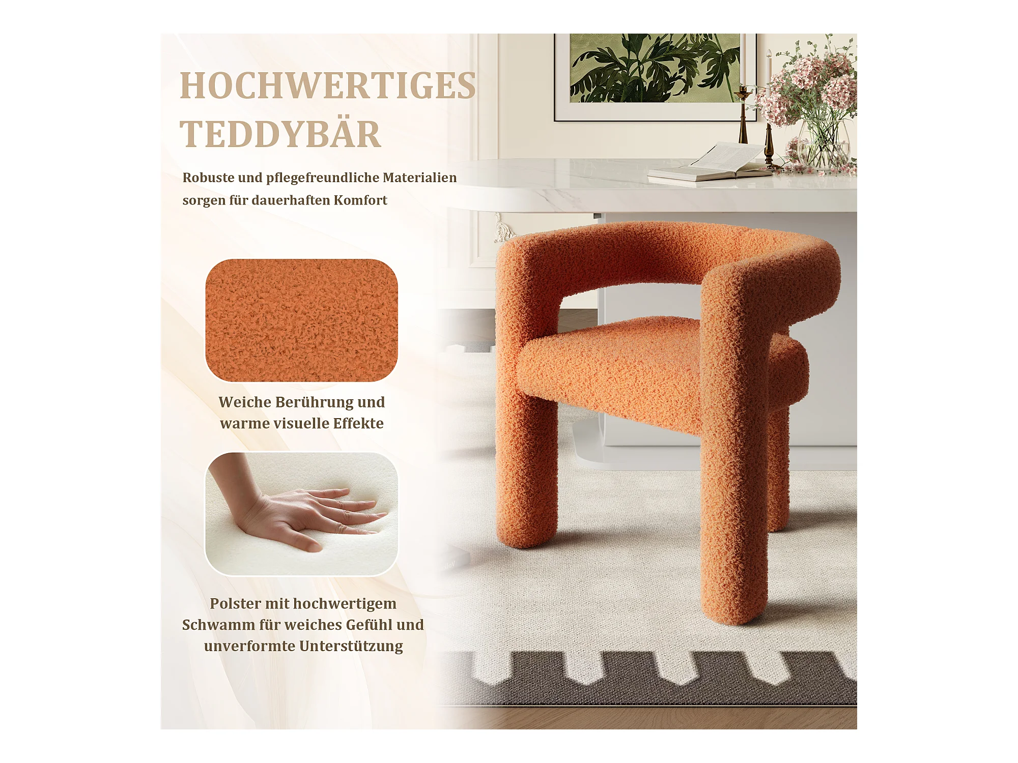 Fauteuil ergonomique en Teddy Flor premium, design unique, confort optimal, couleur orange (62.5x32.5x71 cm)