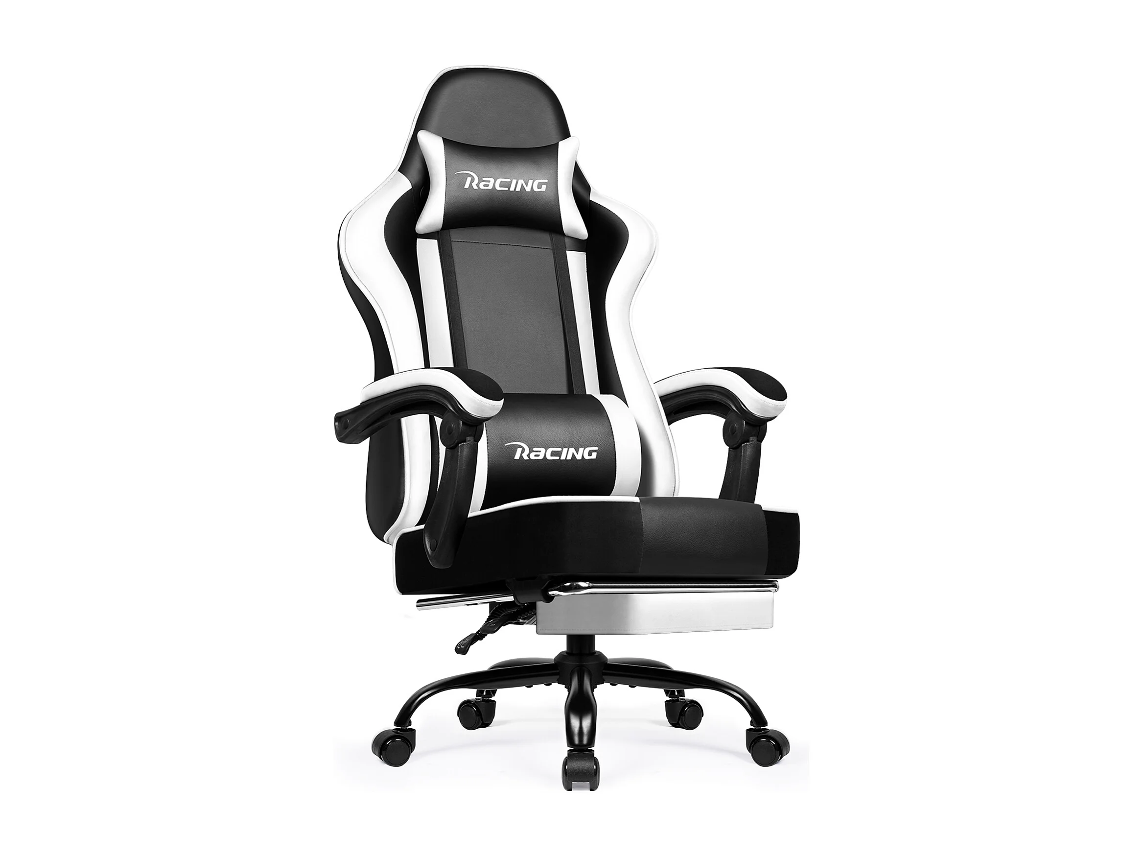 Fauteuil de jeux vidéo et repose-pied Noir et blanc Similicuir
