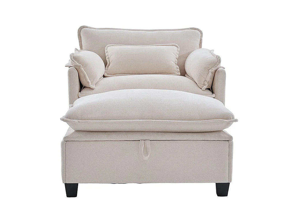 Fauteuil géant velours beige avec repose-pieds et rangement intégré beige