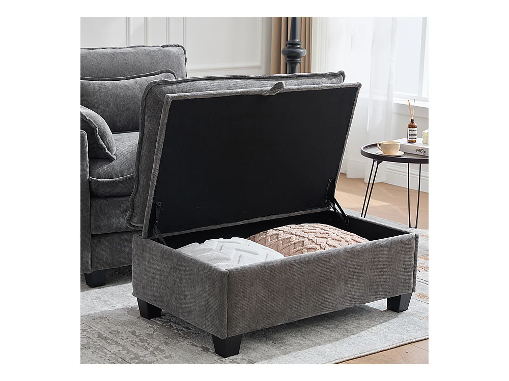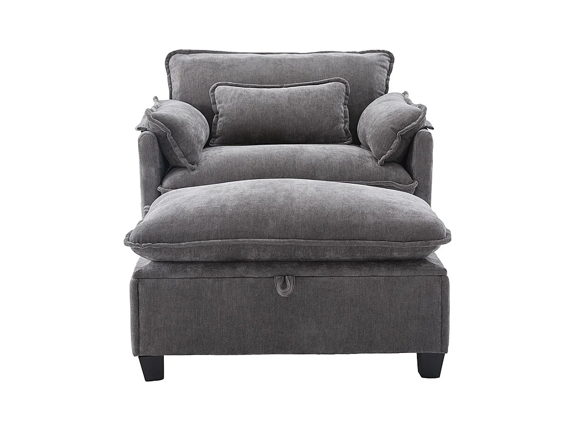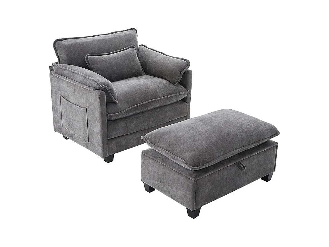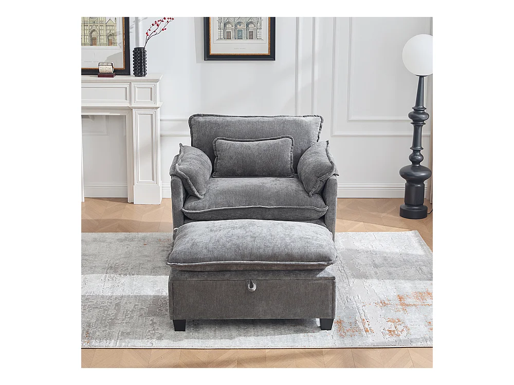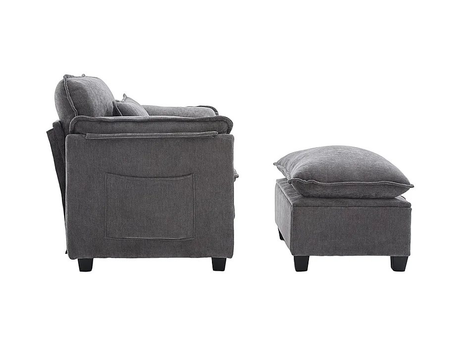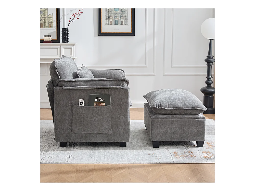 Fauteuil géant velours beige avec repose-pieds et rangement intégré gris