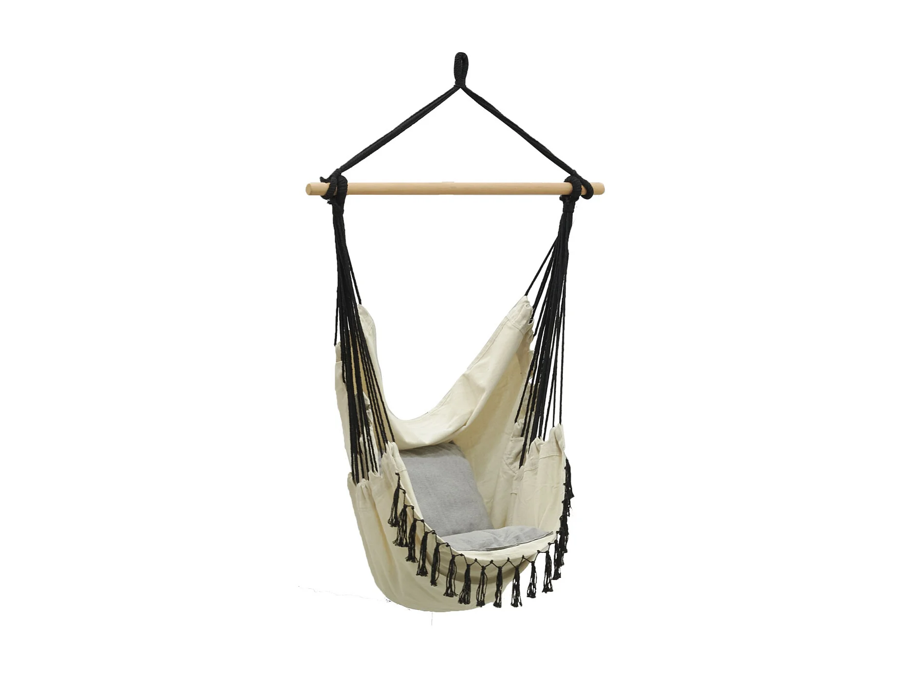 Fauteuil suspendu à franges avec coussin de siège macramé balançoire beige coton