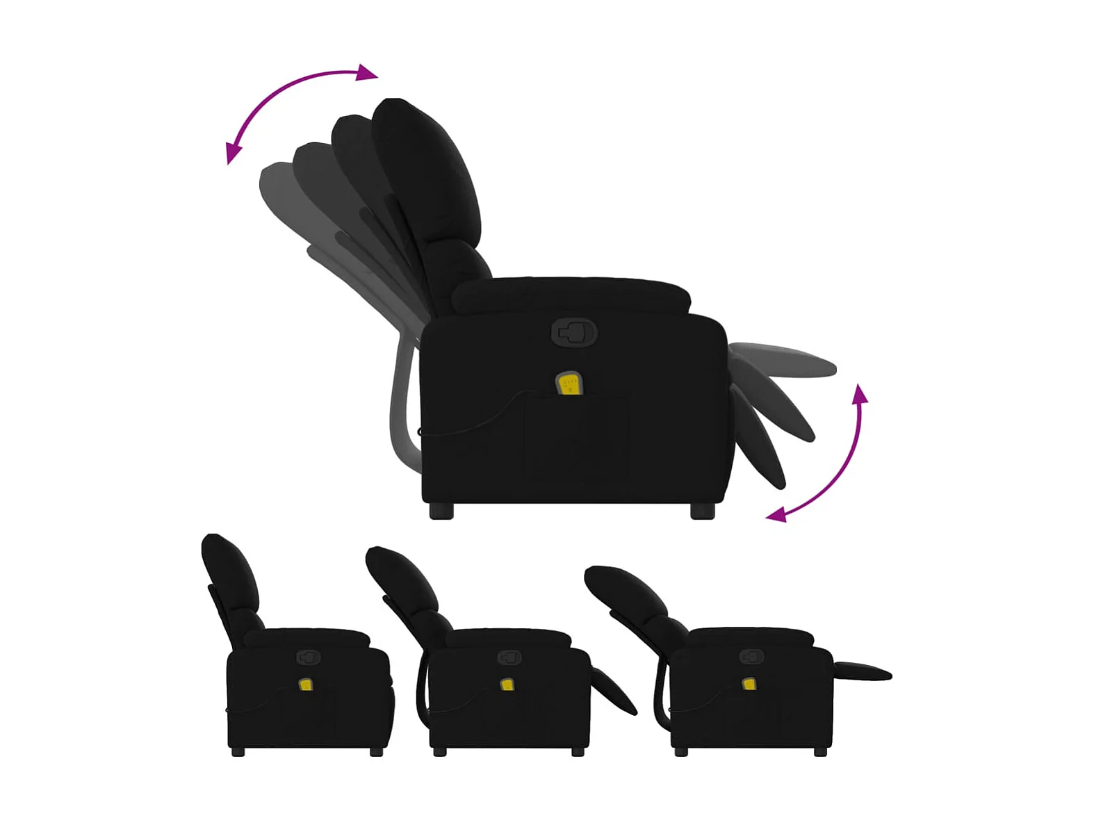 Fauteuil inclinable-Chaise de relax-Fauteuil de Massage noir tissu SHL5339