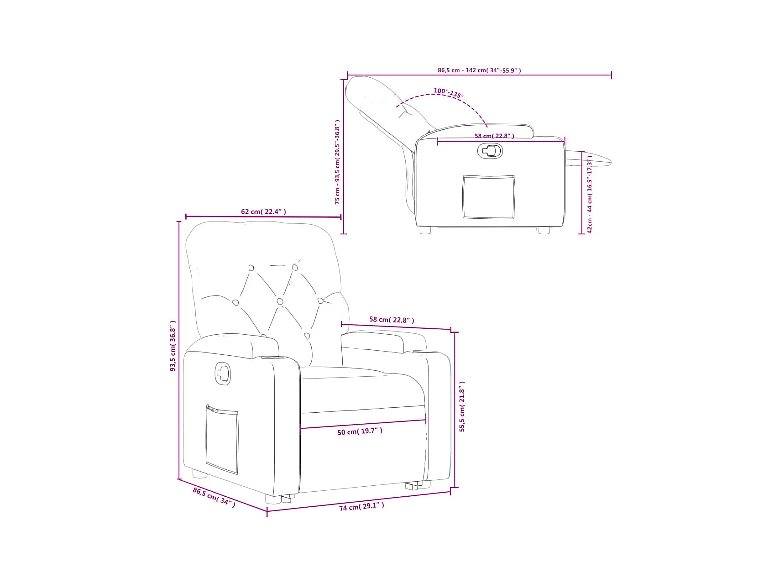 Fauteuil inclinable Crème Similicuir