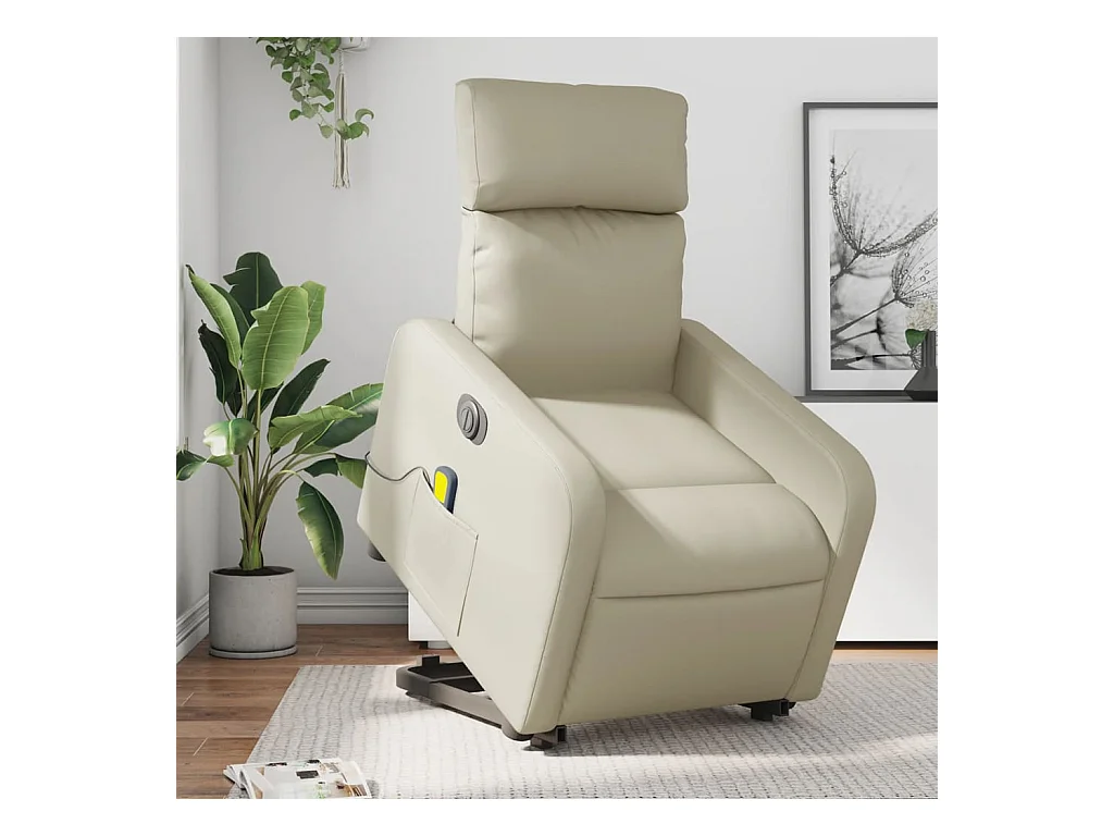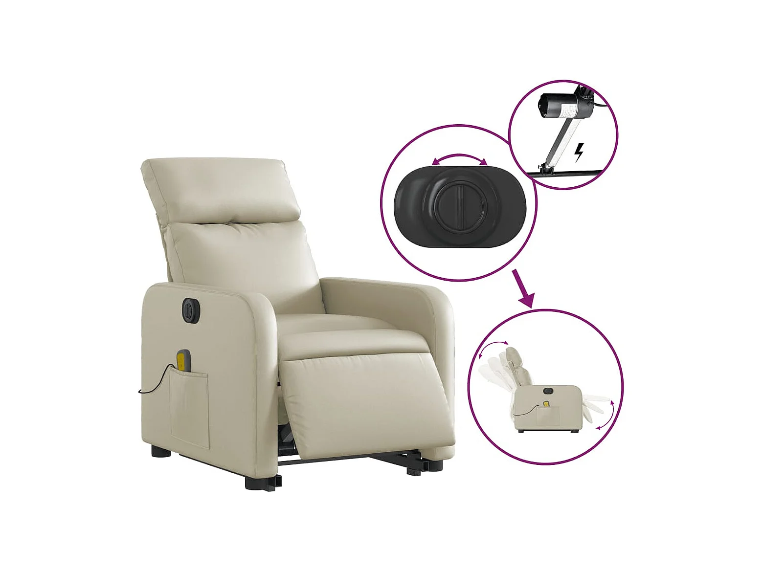 Fauteuil inclinable de massage électrique crème similicuir REO15735