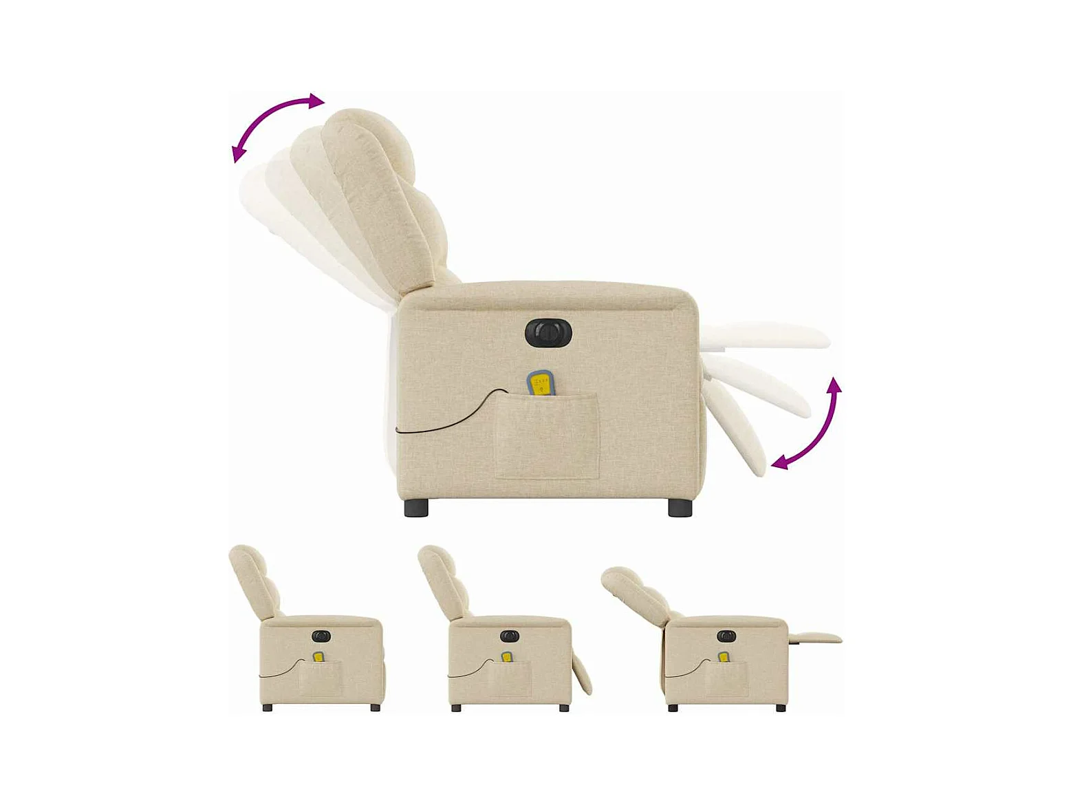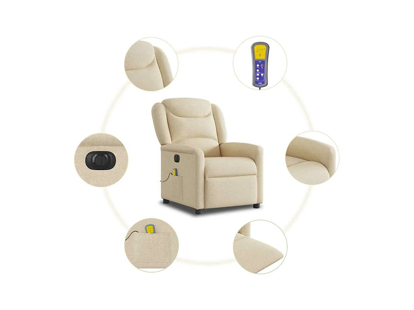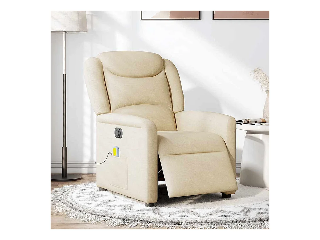 Fauteuil inclinable de massage électrique crème tissu