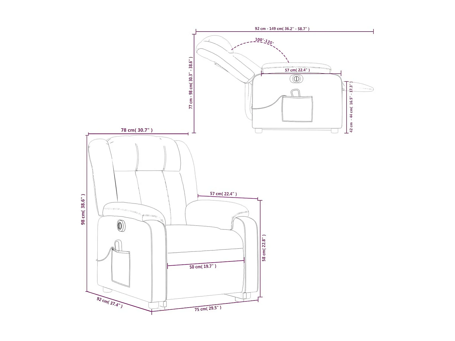 Fauteuil inclinable de massage électrique Rouge bordeaux Tissu