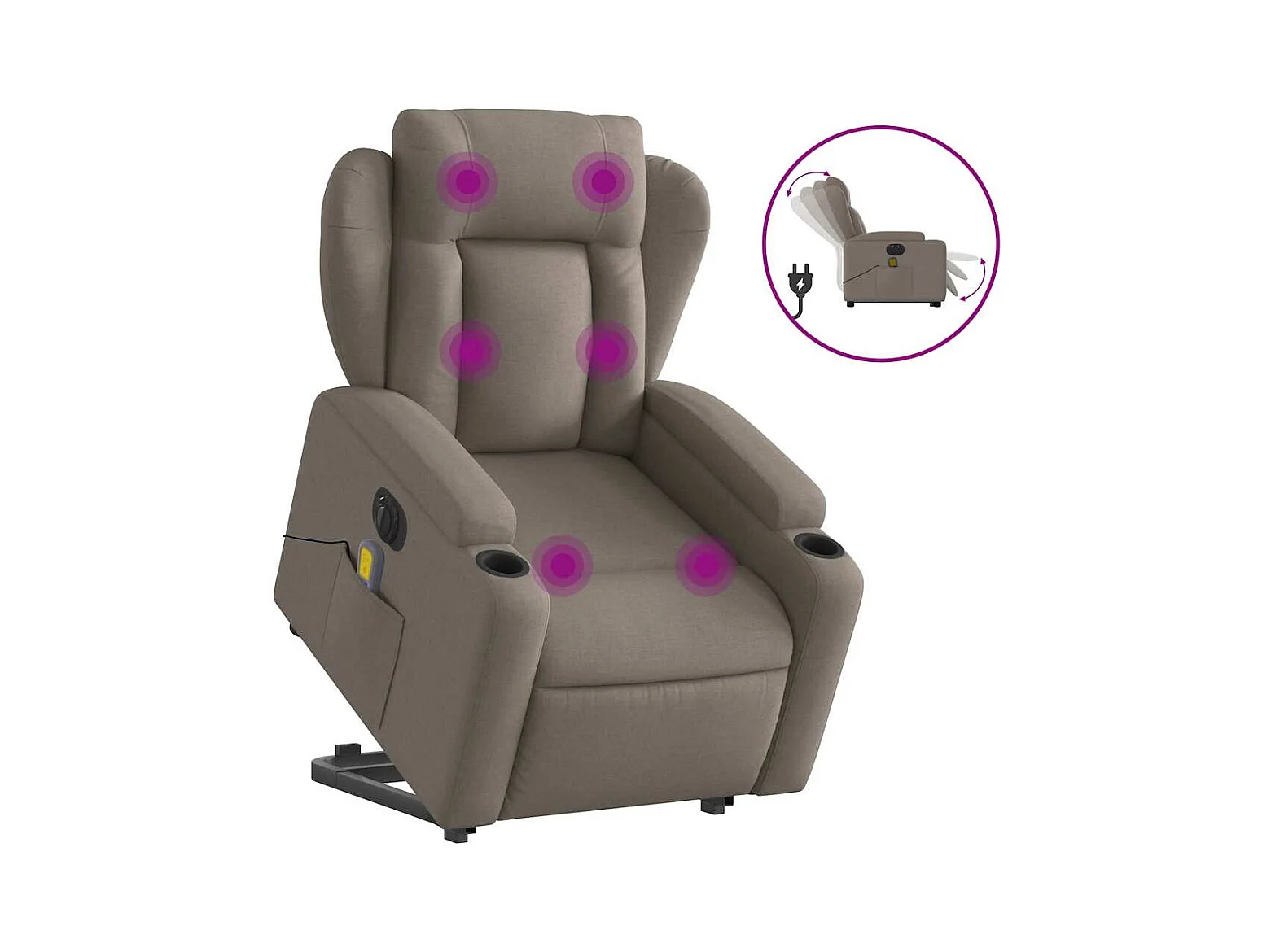 Fauteuil inclinable de massage électrique Taupe Tissu