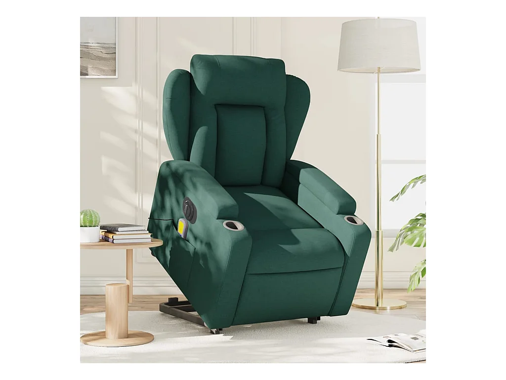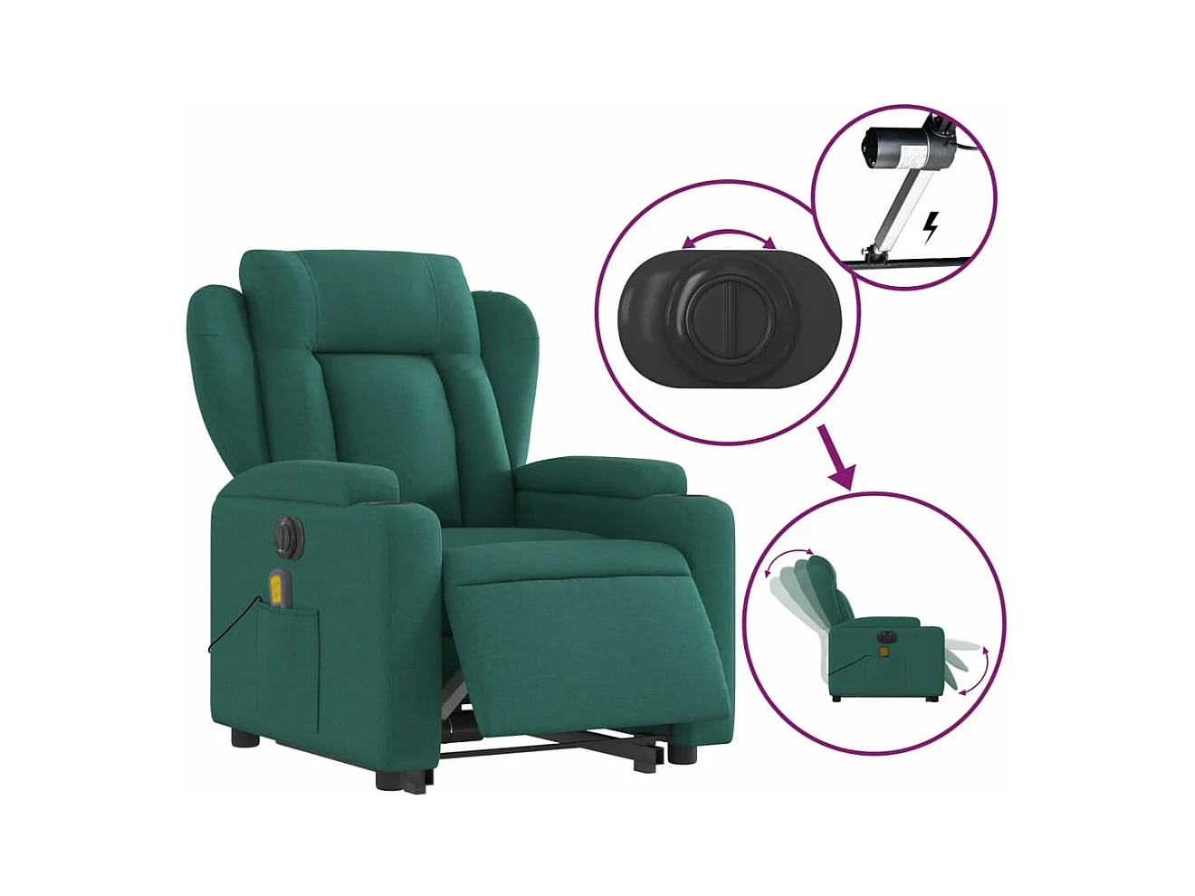 Fauteuil inclinable de massage électrique Vert foncé Tissu