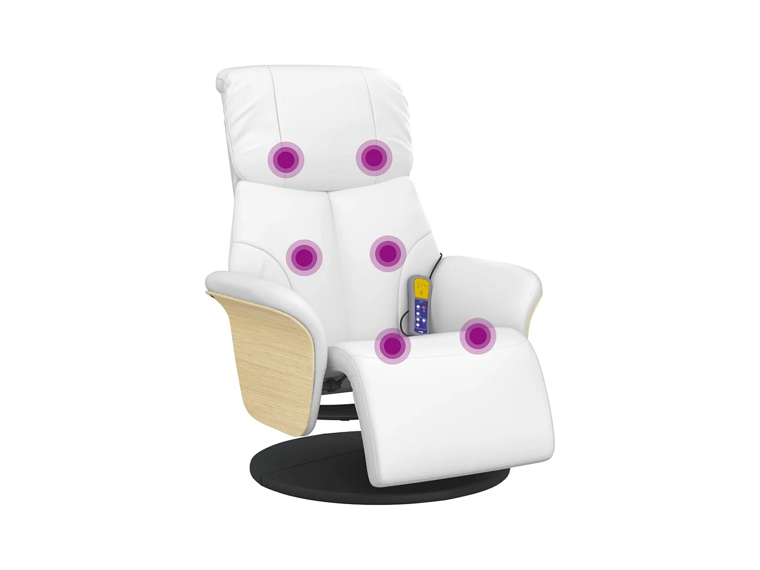 Fauteuil inclinable de massage repose-pieds blanc similicuir