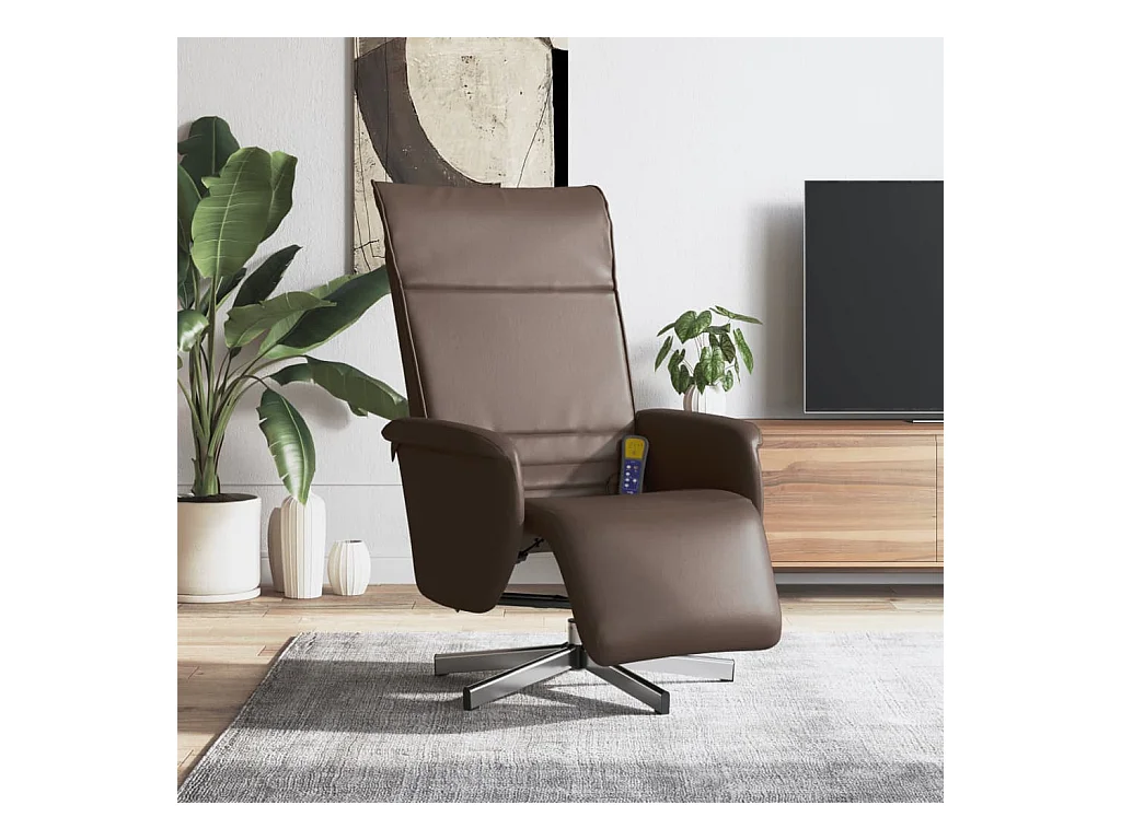 Fauteuil inclinable de massage repose-pieds marron similicuir