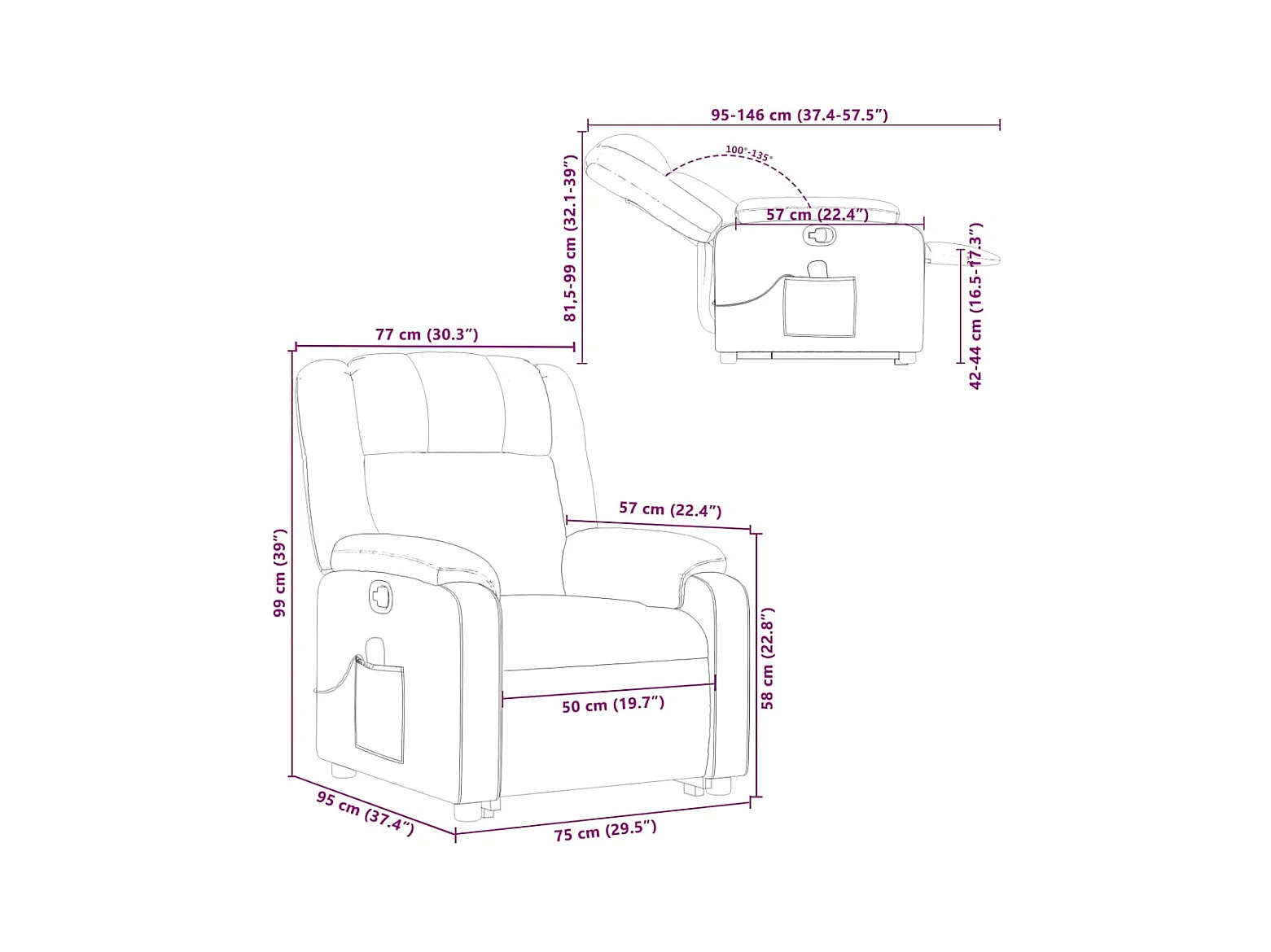 Fauteuil inclinable de massage Taupe Tissu