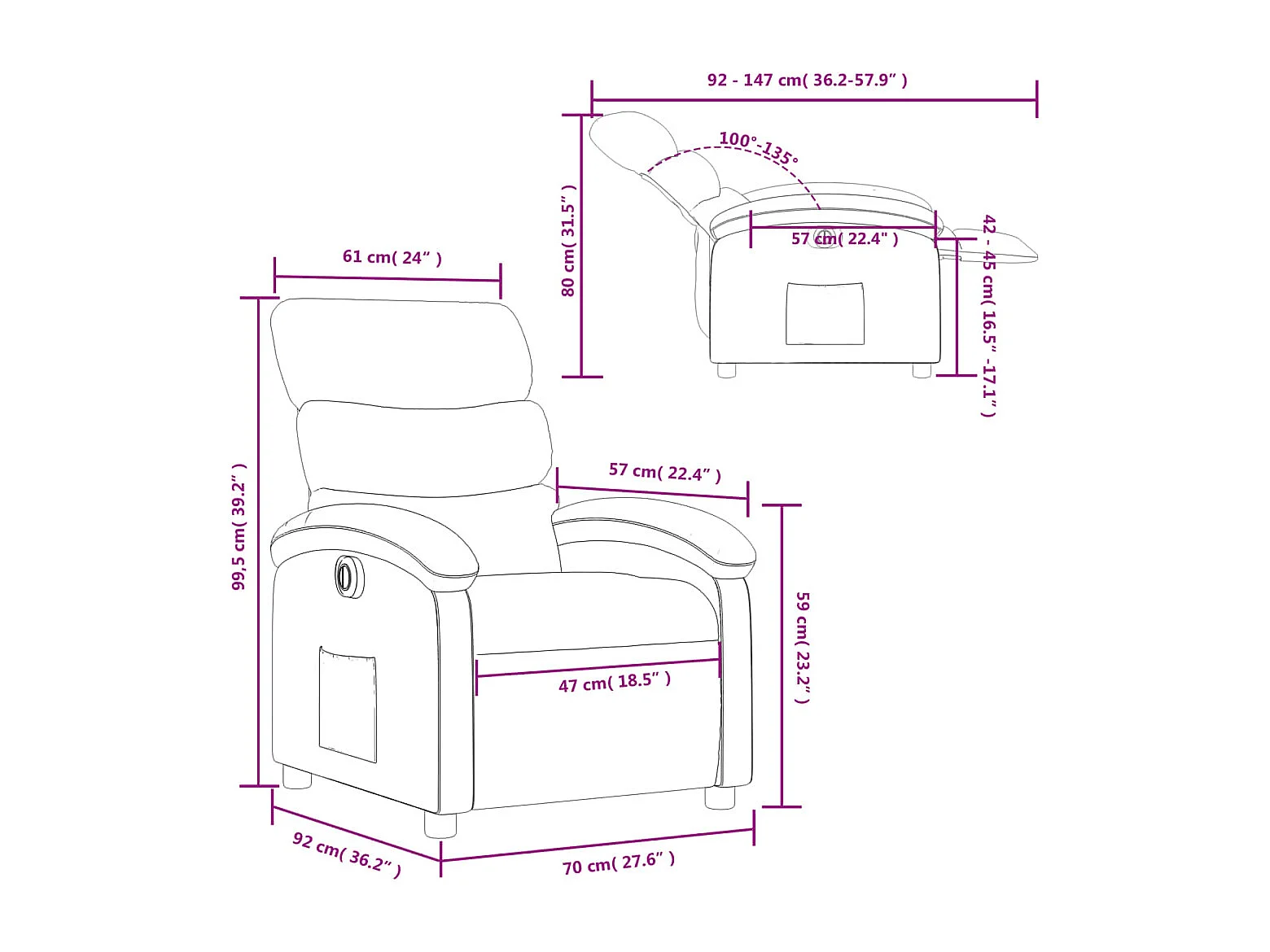 Fauteuil inclinable électrique Crème Similicuir