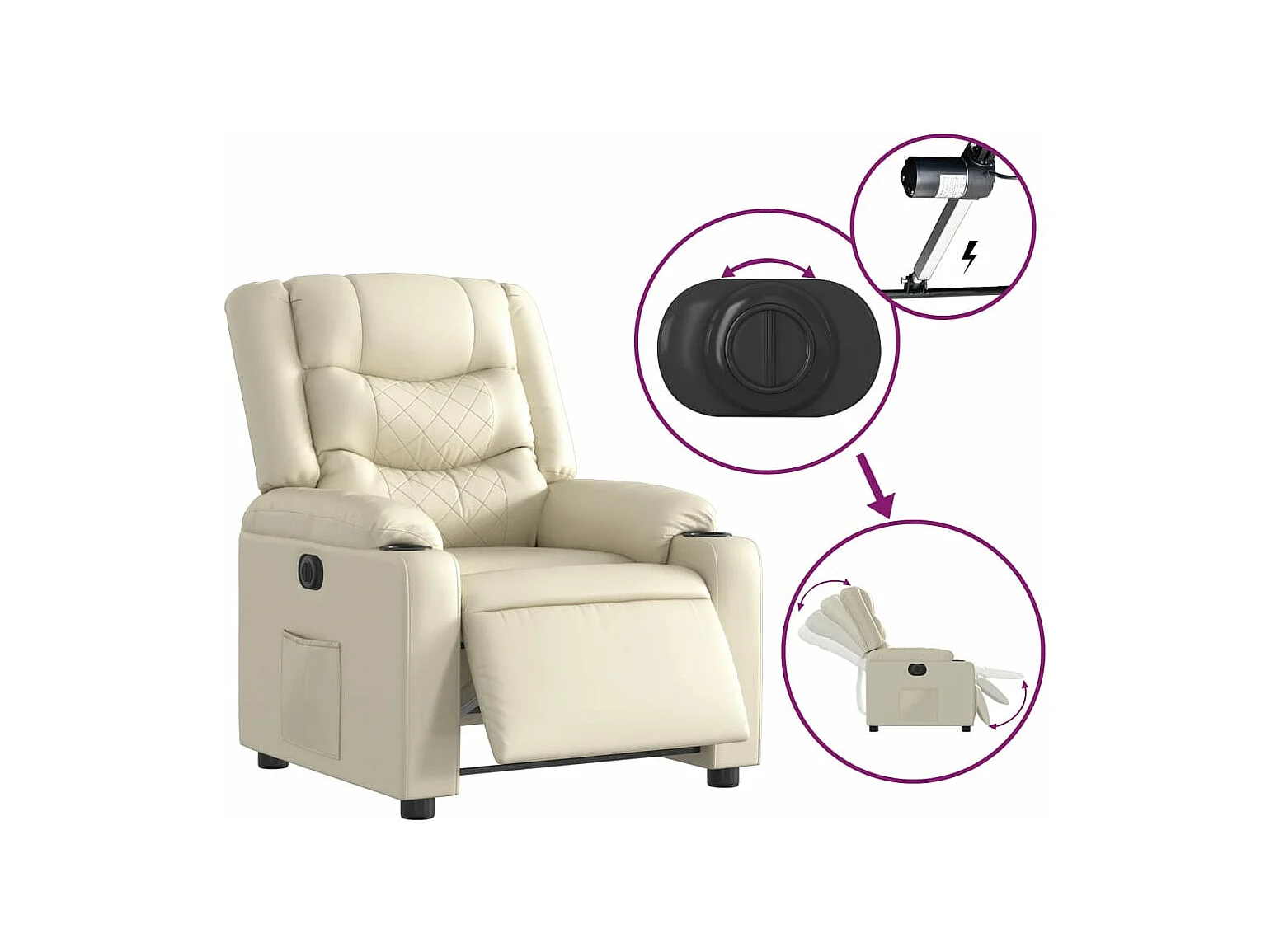 Fauteuil inclinable électrique Crème Similicuir