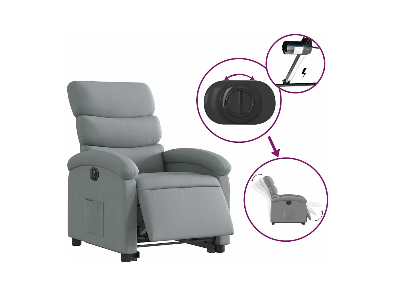 Fauteuil inclinable électrique gris clair tissu REO78705