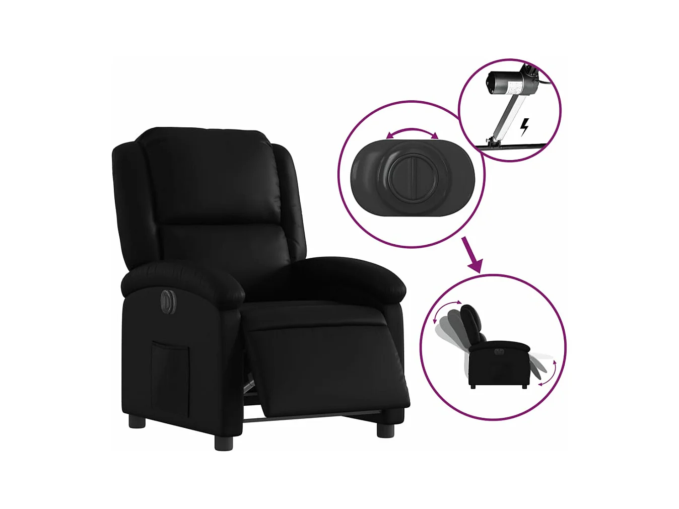 Fauteuil inclinable électrique Noir Similicuir REO13661