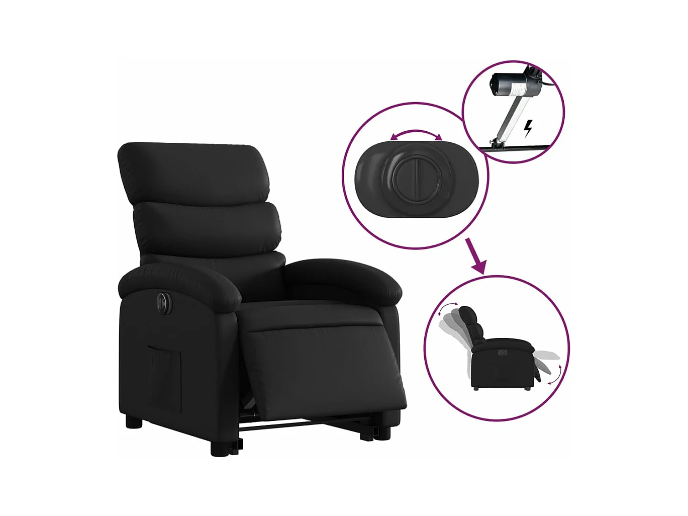 Fauteuil inclinable électrique noir similicuir REO74704