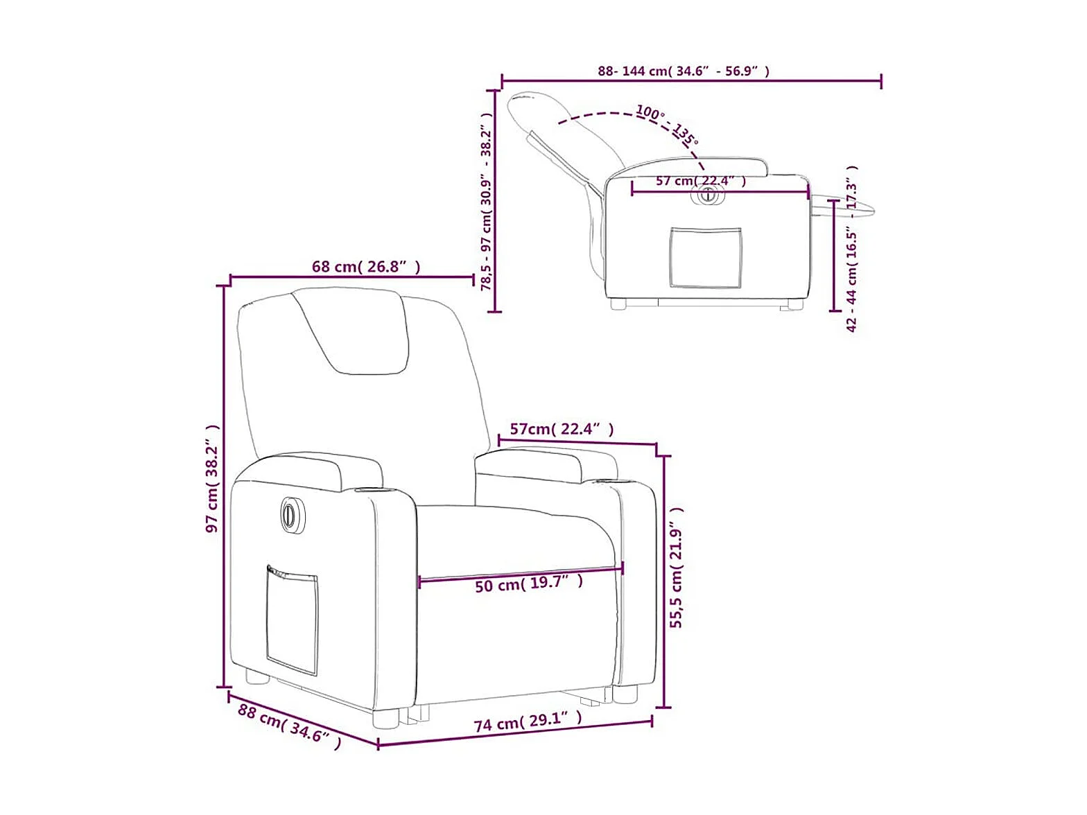 Fauteuil inclinable électrique noir tissu