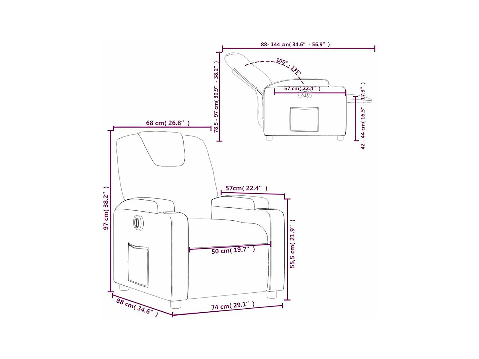 Fauteuil inclinable électrique Taupe Tissu