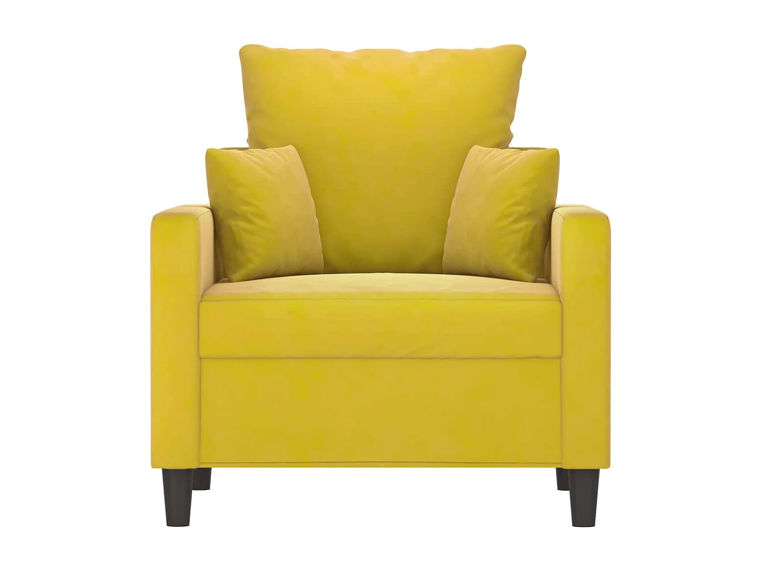 Fauteuil scandinave en tissu effet velours jaune moutarde et bois clair ISKO