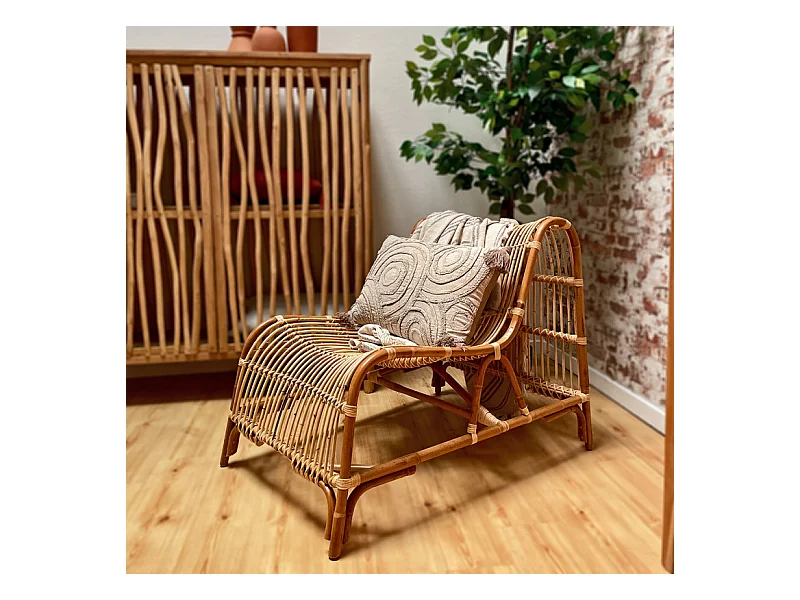 Fauteuil lounge arrondi en rotin naturel tressé – JACKIE