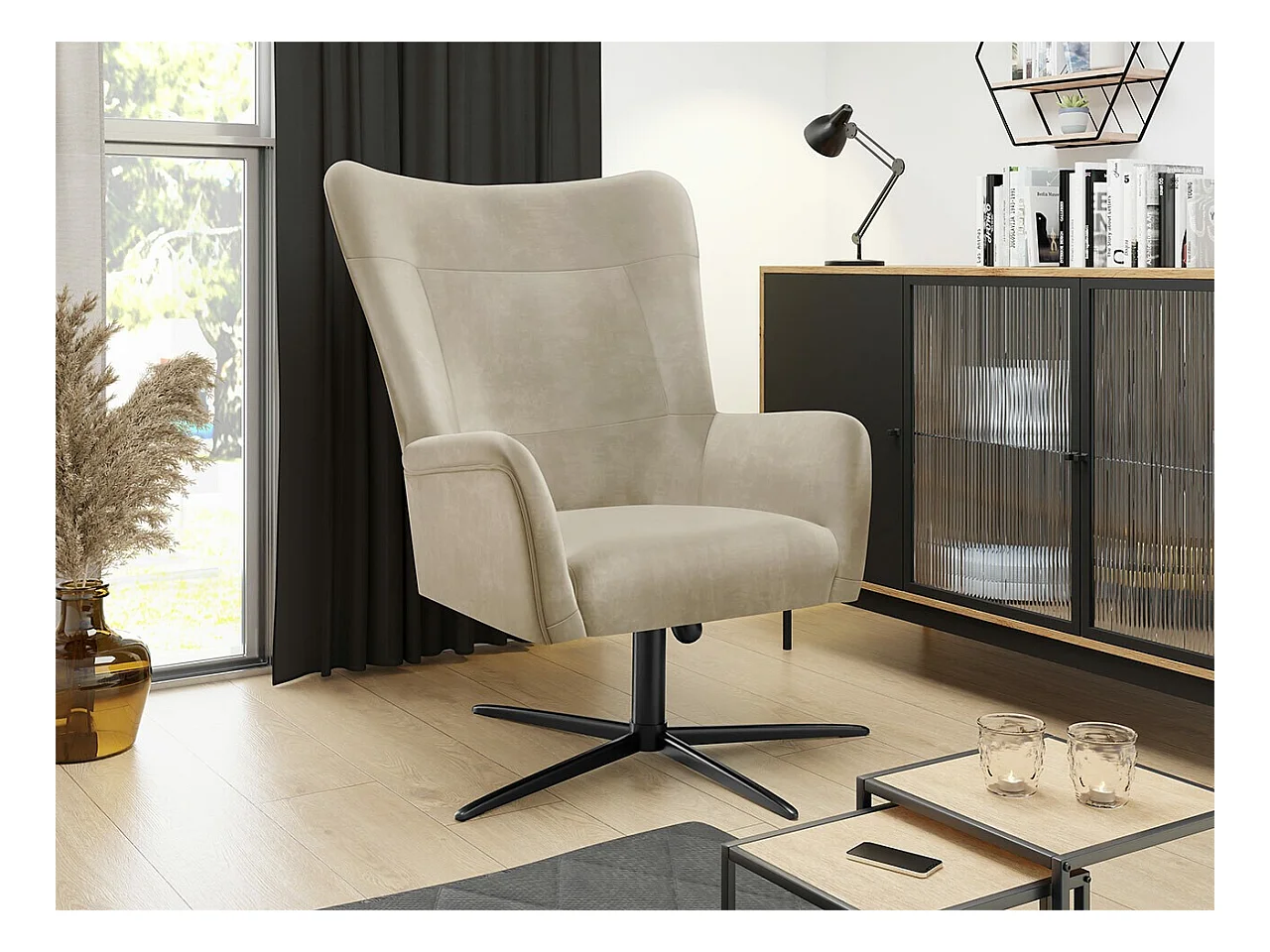 Fauteuil Marana 100, Brun clair, 95x75x83cm, Tapisserie, Pieds: Métal