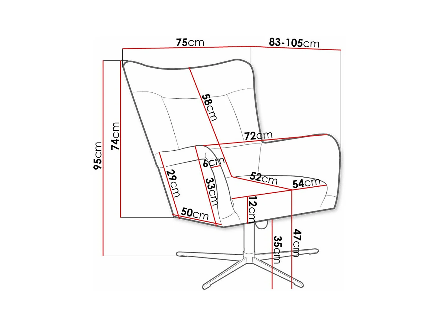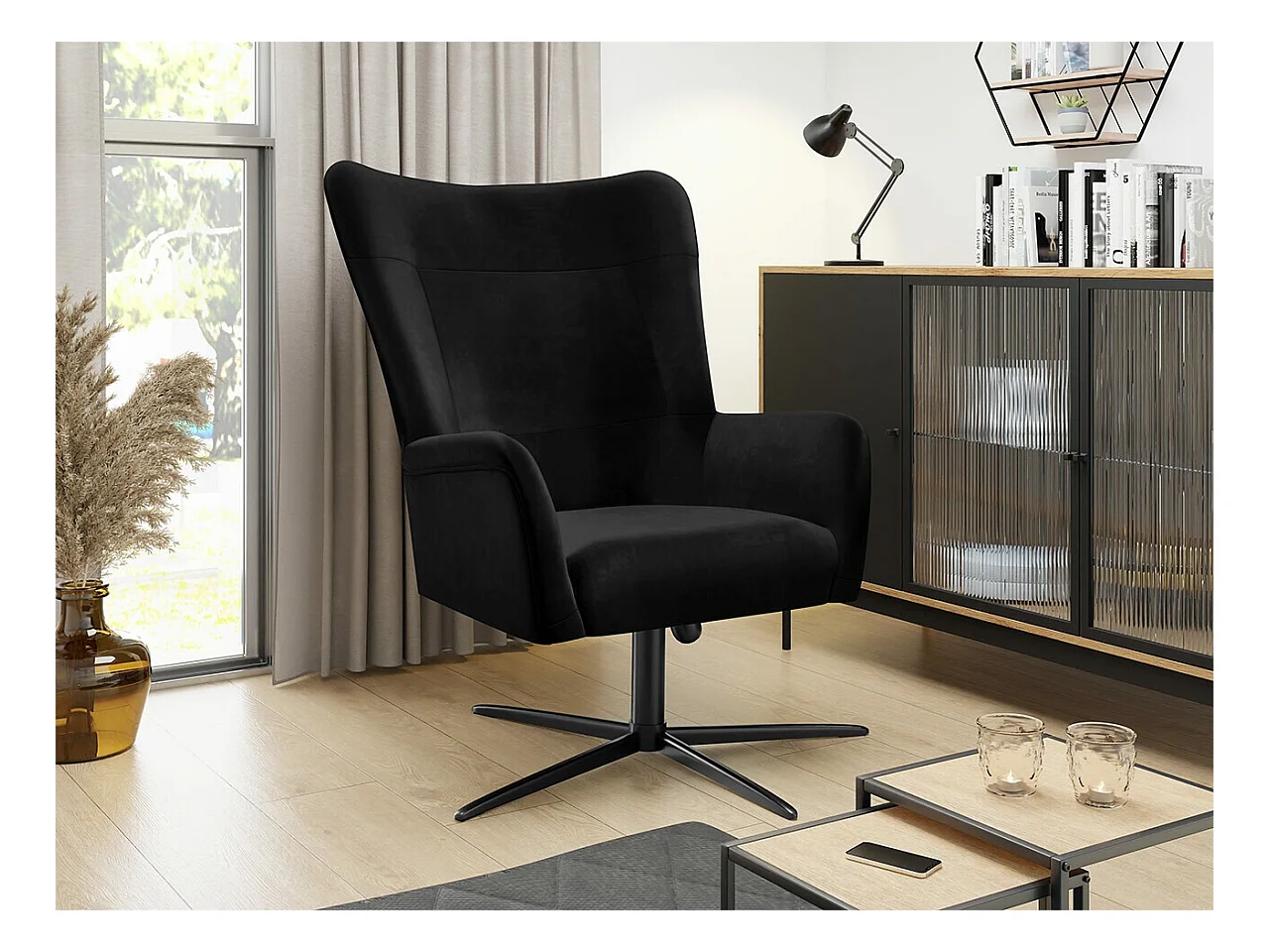 Fauteuil Marana 100, Noir, 95x75x83cm, Tapisserie, Pieds: Métal