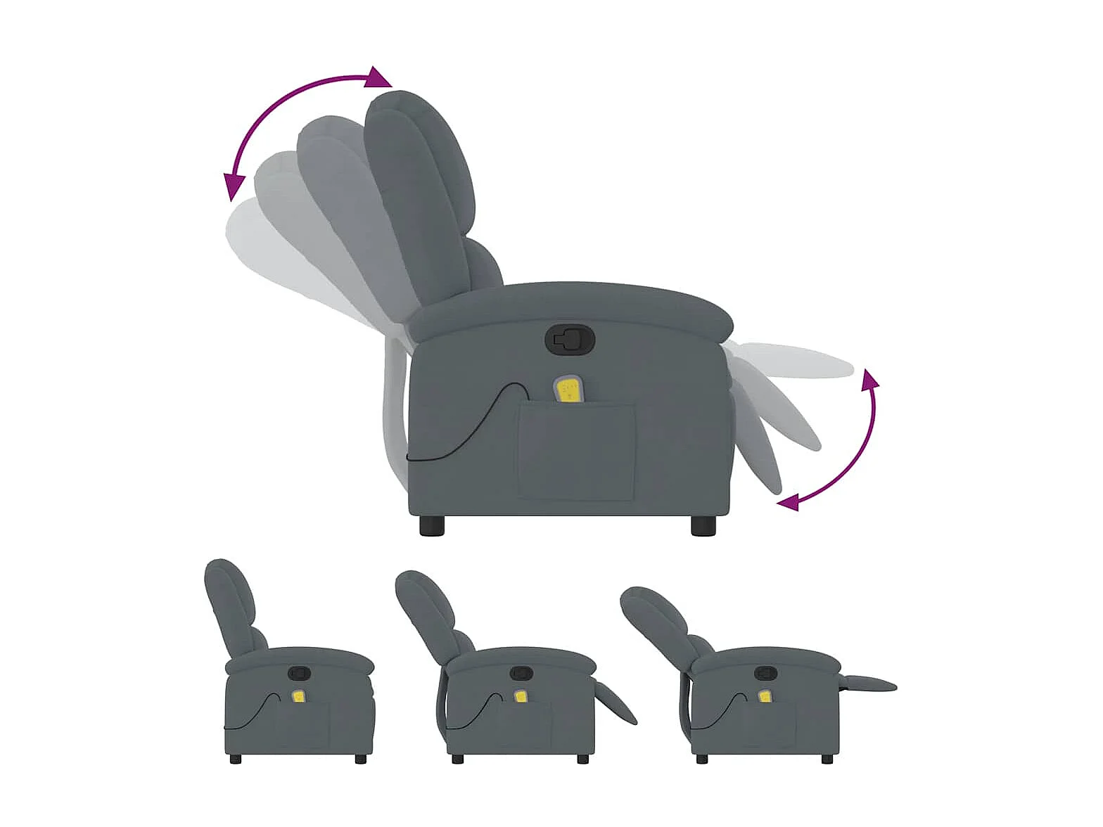 Fauteuil massant inclinable gris foncé velours