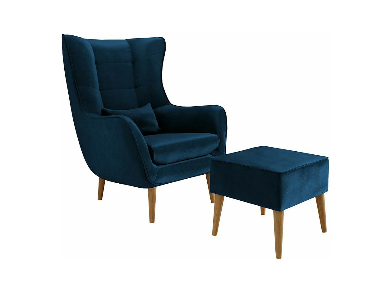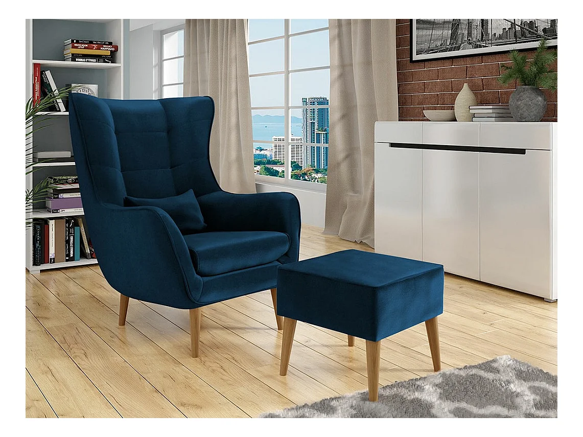 Fauteuil Comfivo 206, Bleu, 106x80x95cm, Tapisserie, Pieds: Bois