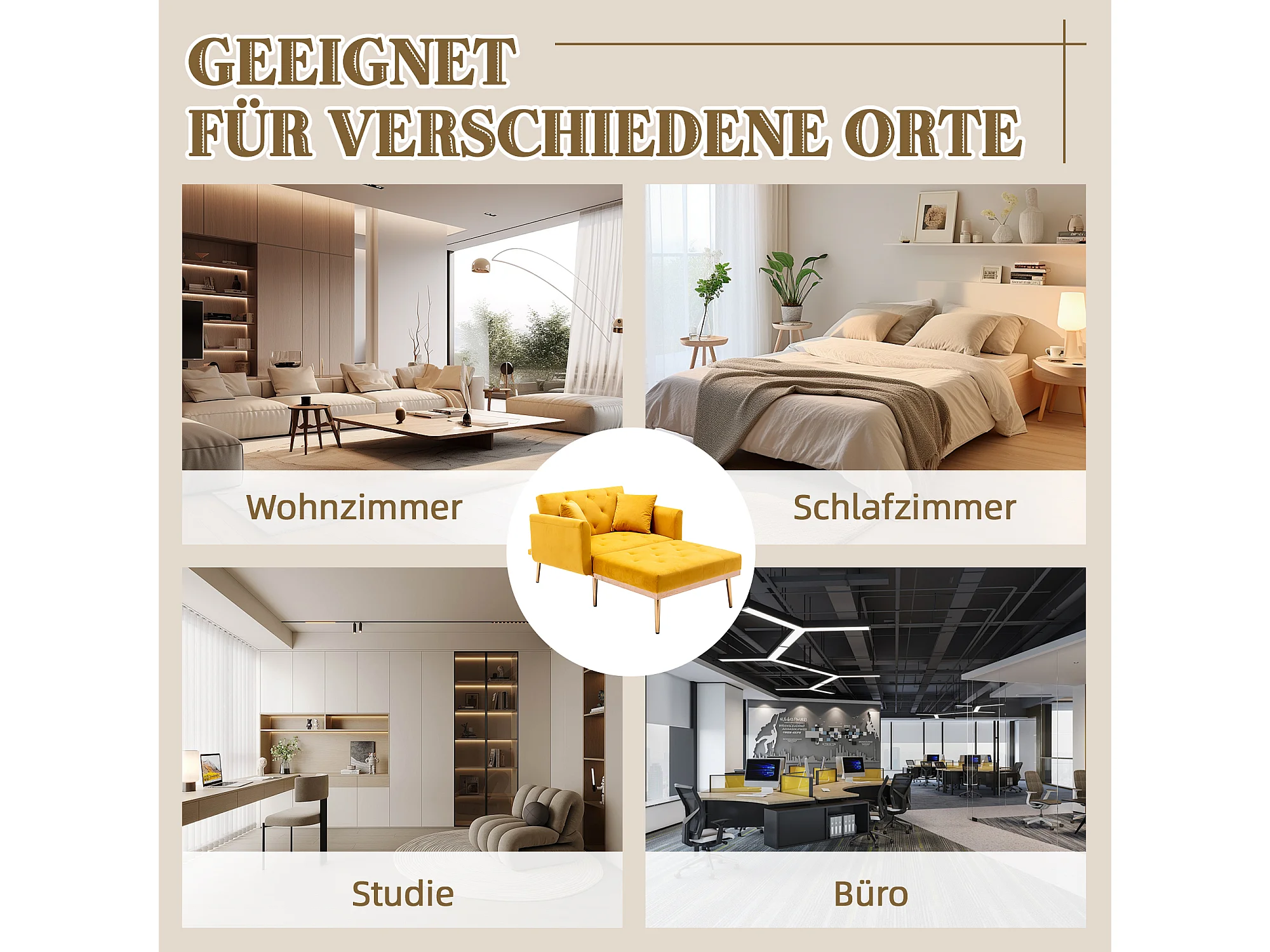 Fauteuil Moderne avec Dossier Réglable, Fauteuil Relax, Velours, Moutarde (165x90x77 cm)