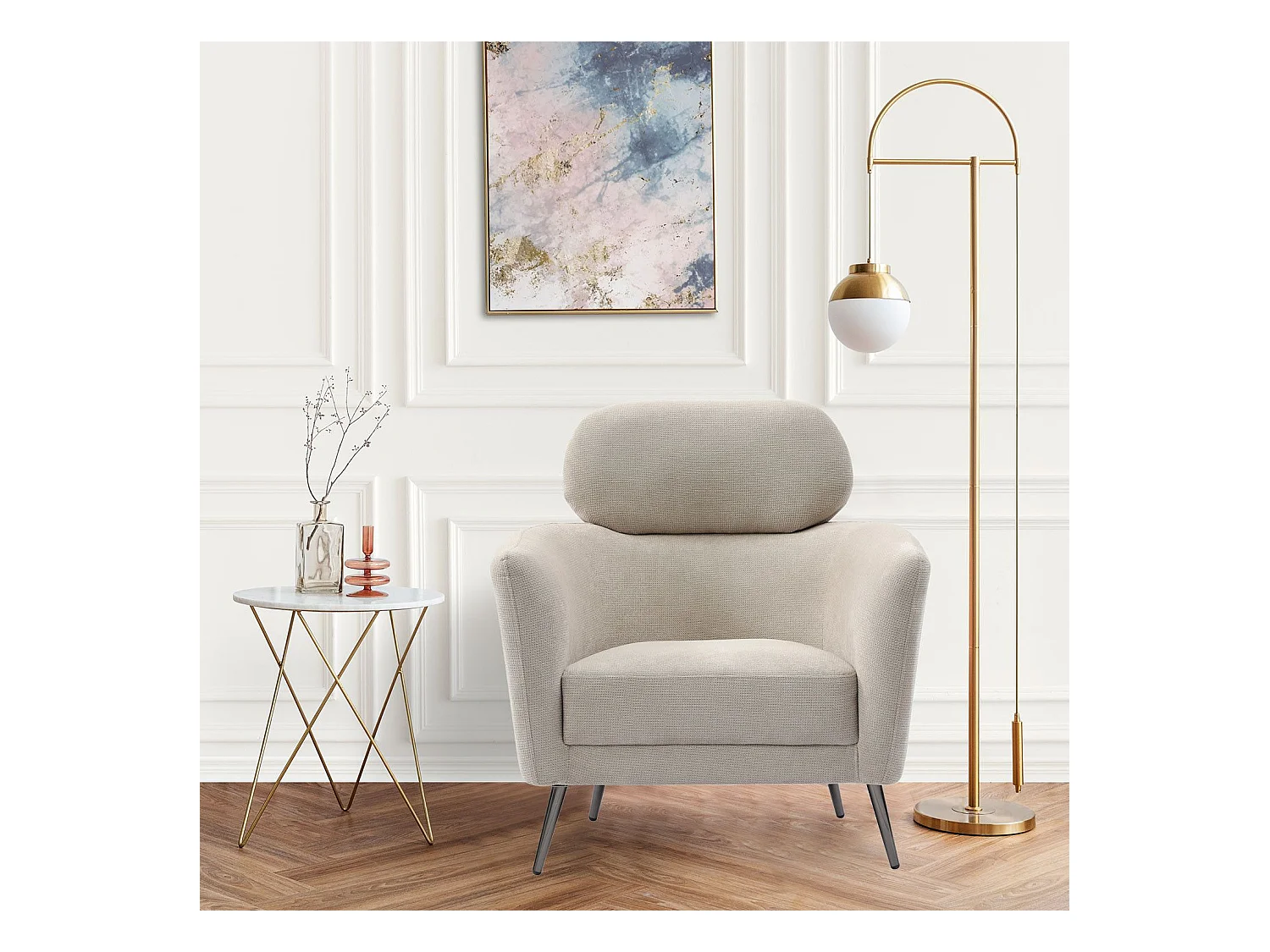 Fauteuil moderne avec haut dossier Damigal Tissu doux Beige