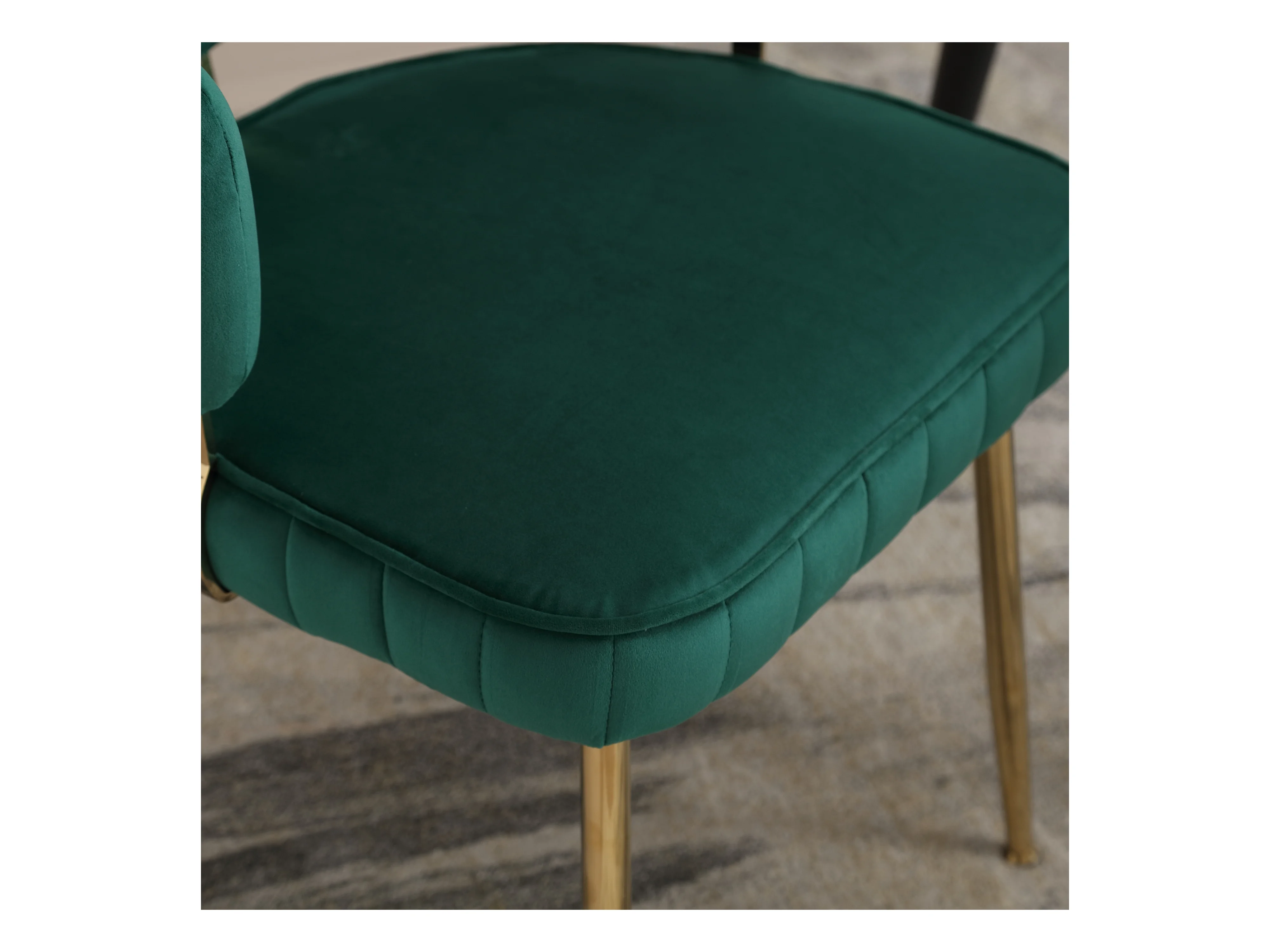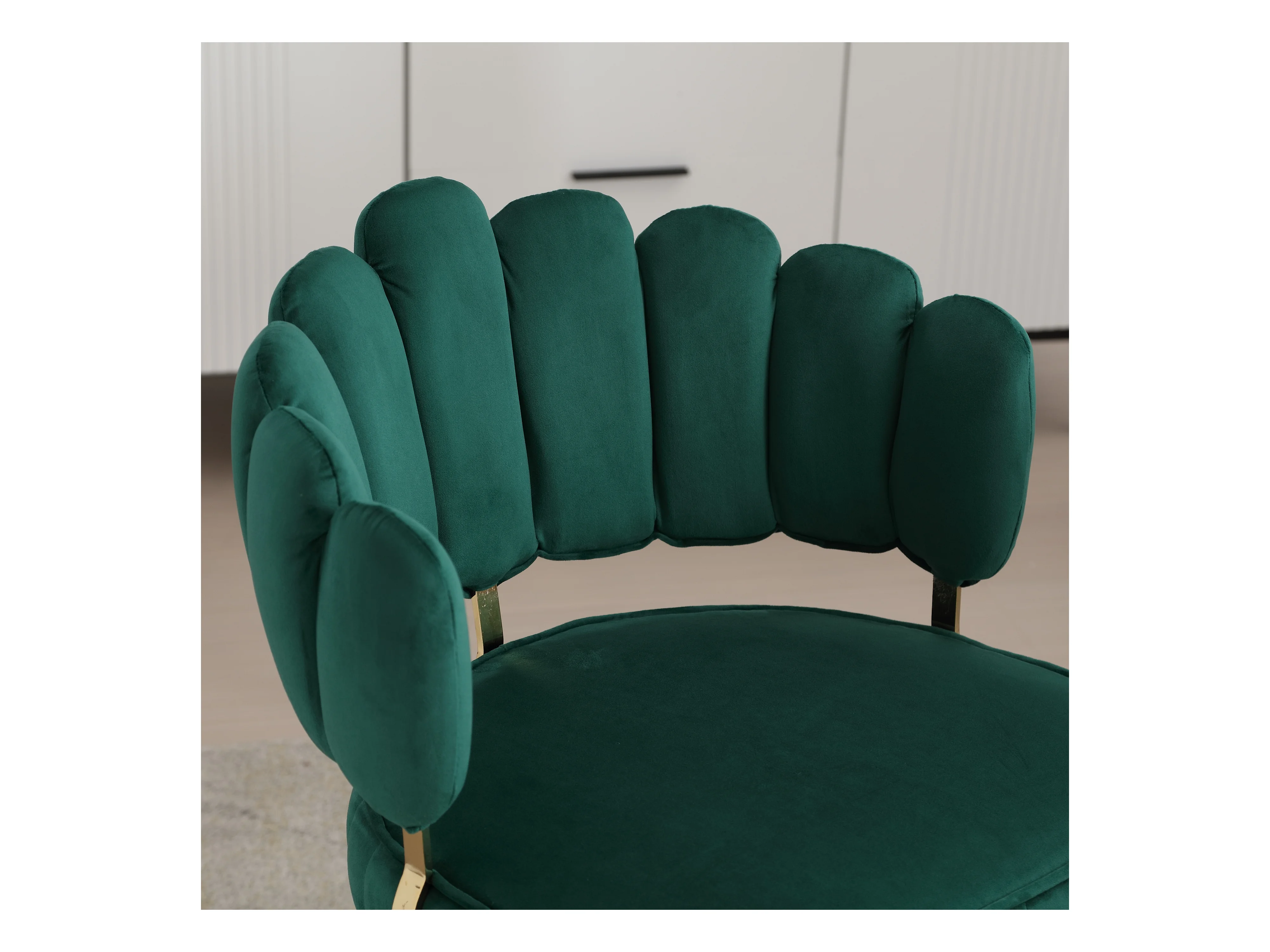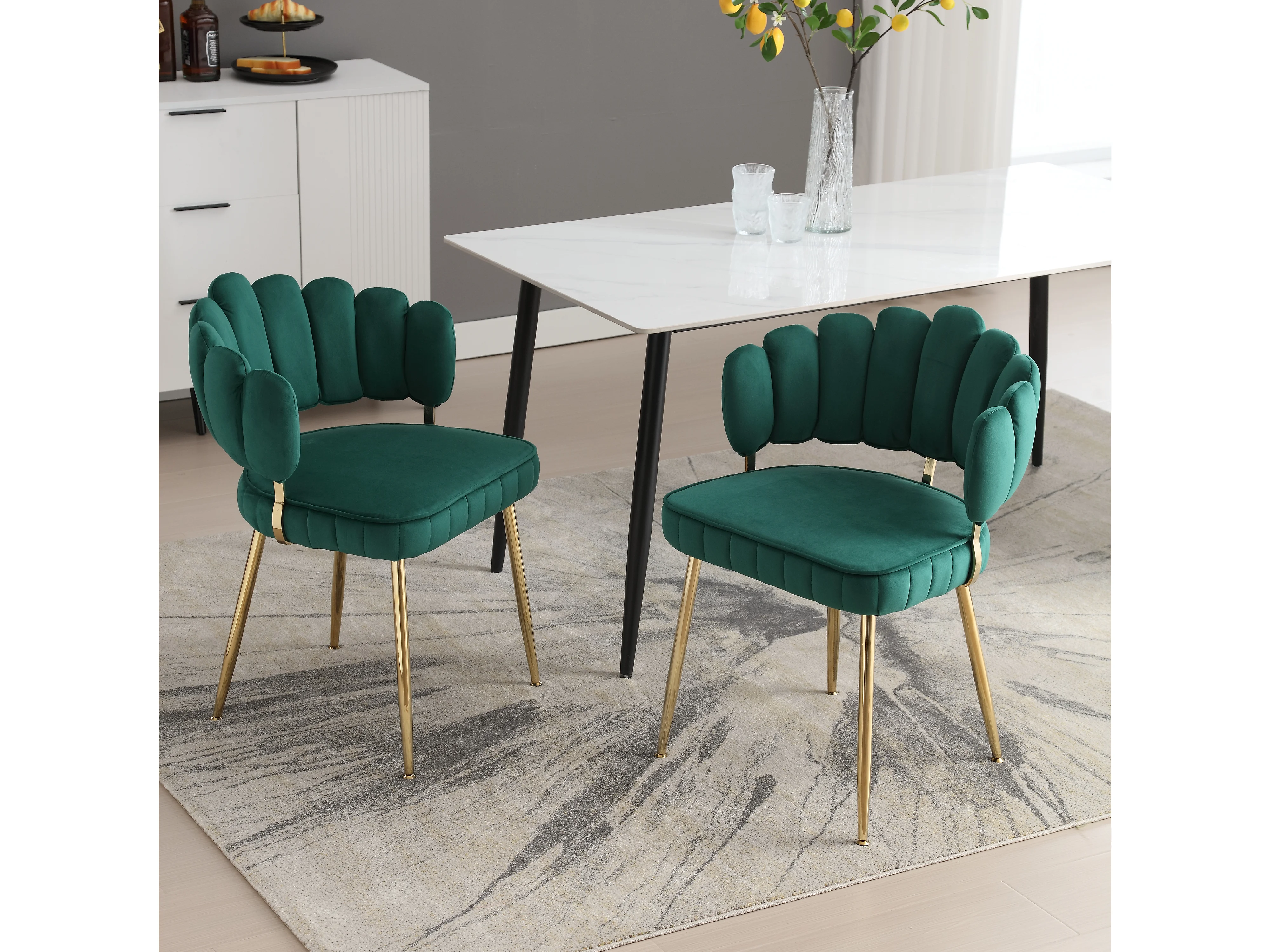 Fauteuil moderne en velours, dossier en forme de fleur, accoudoirs arrondis, pieds en métal, vert émeraude (58x56x78 cm, lot de 2)