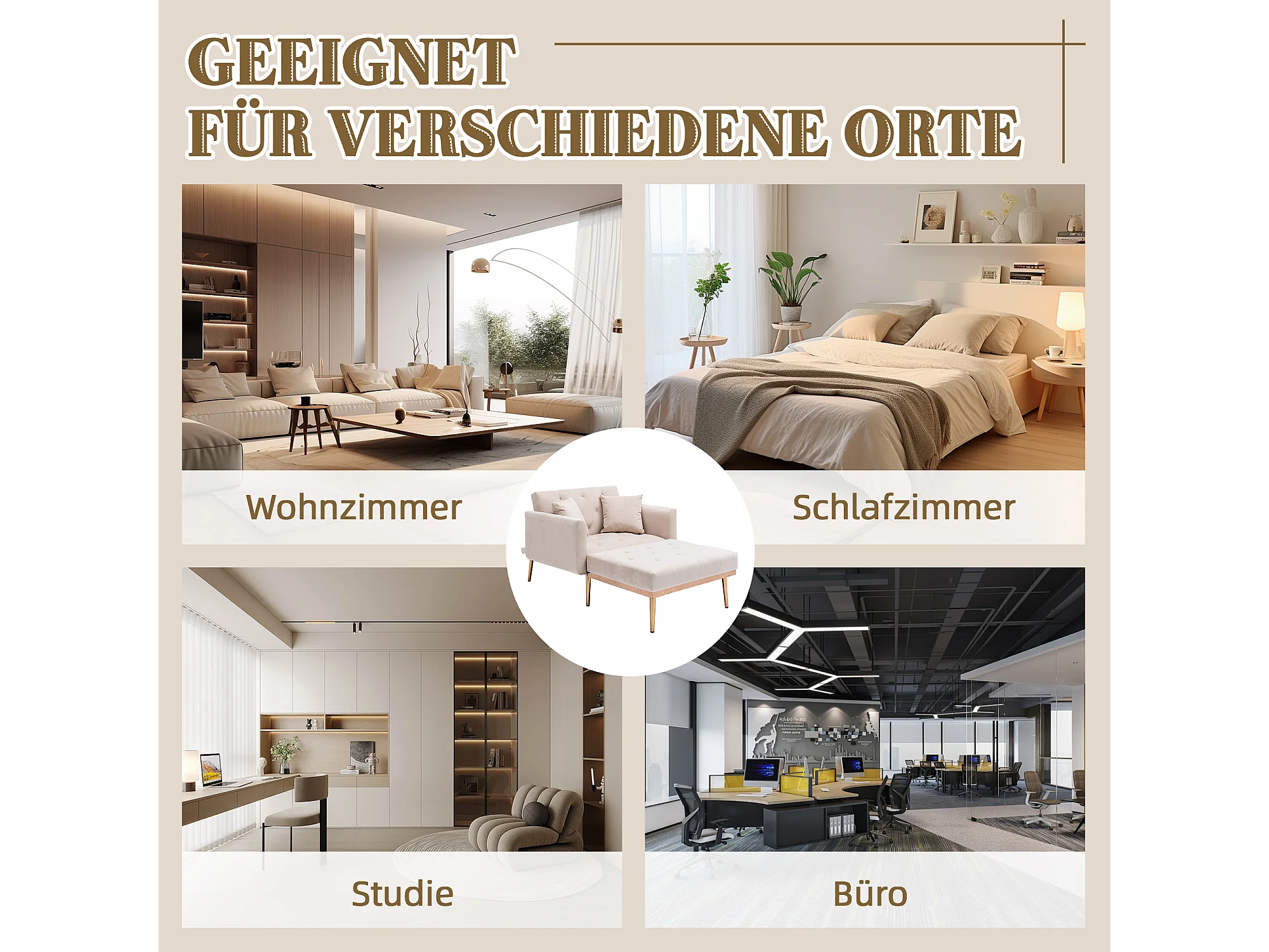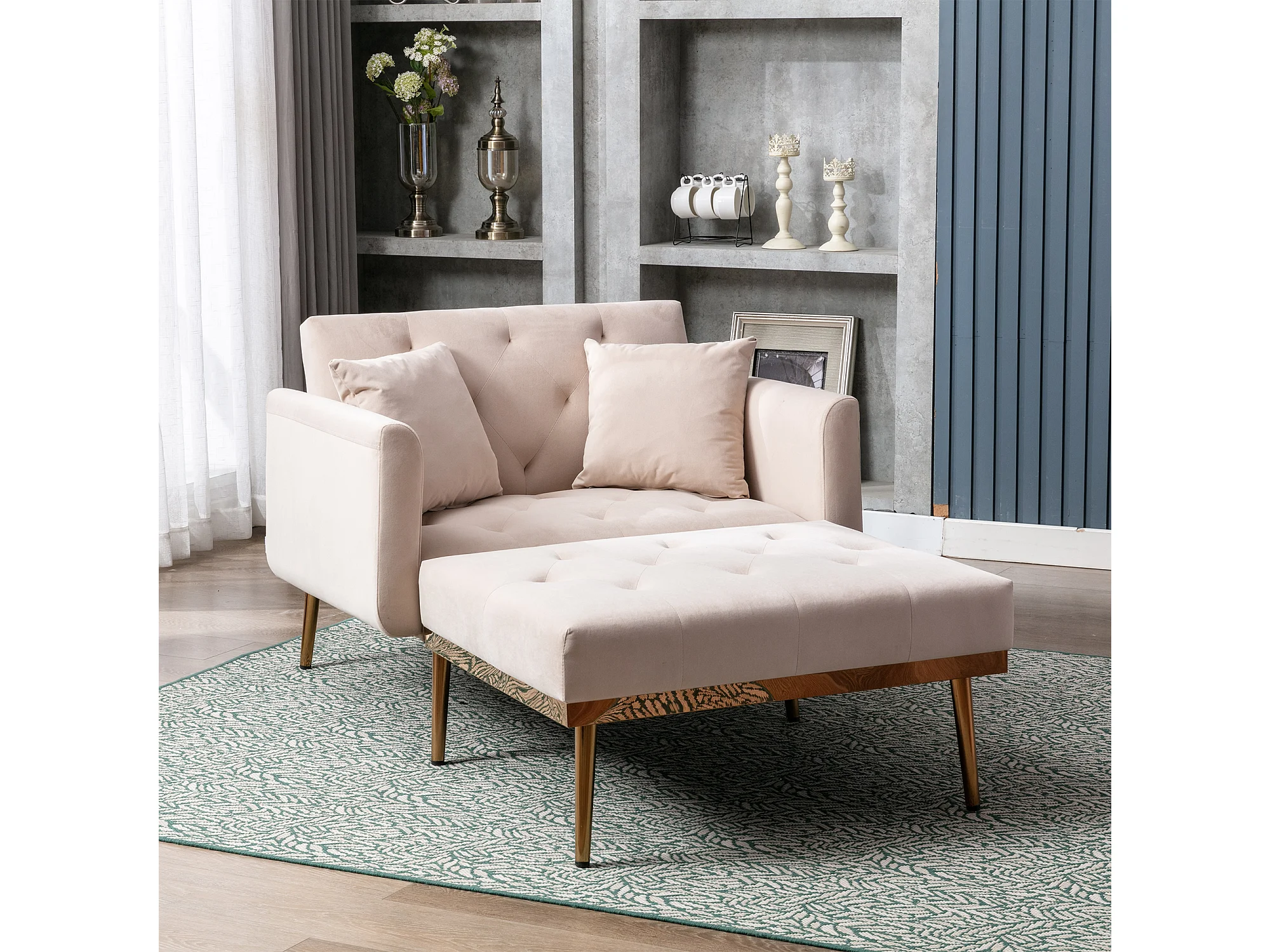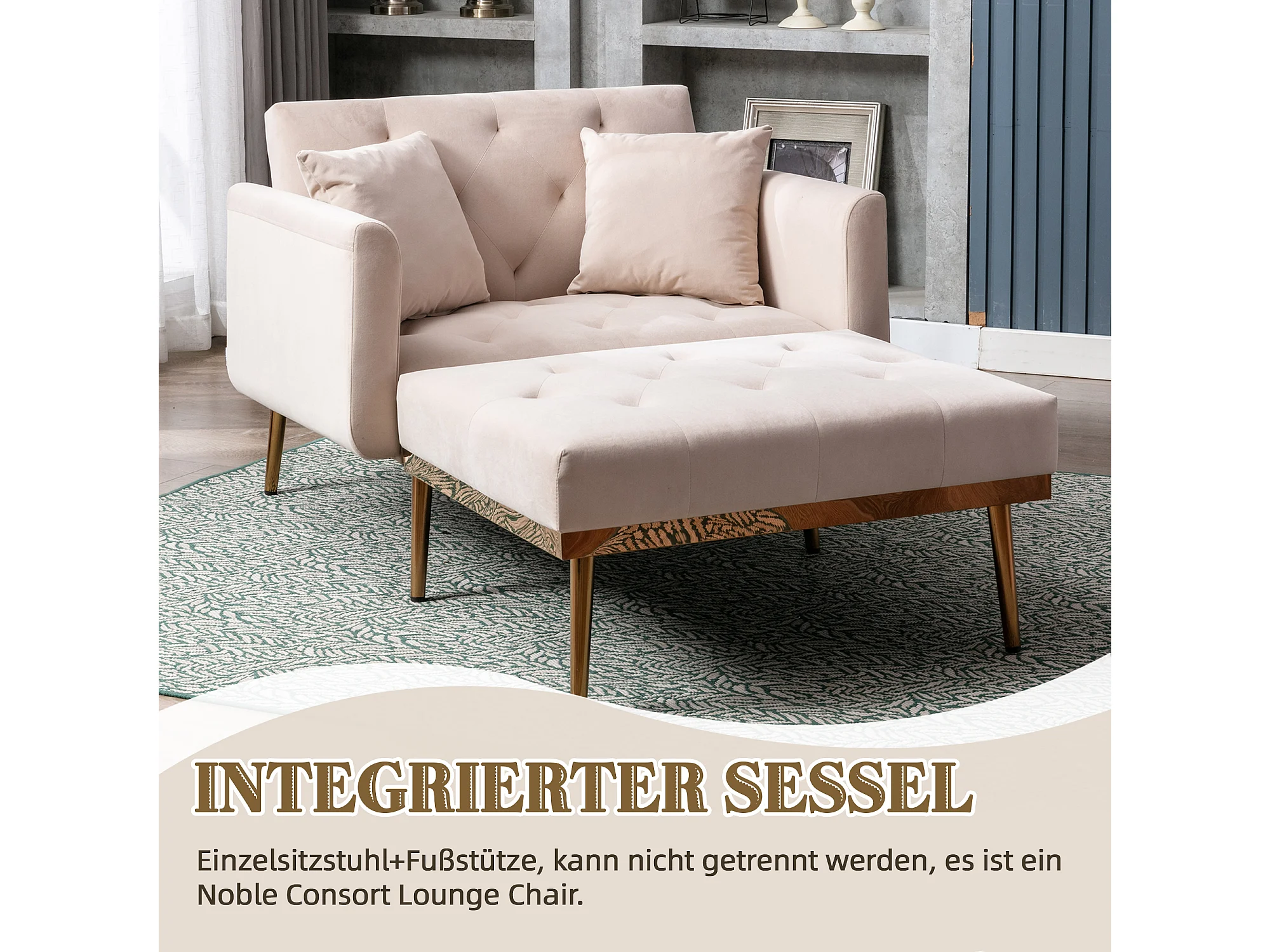 Fauteuil Moderne Réglable, Dossier Ajustable, Velours Beige (165x90x77 cm)