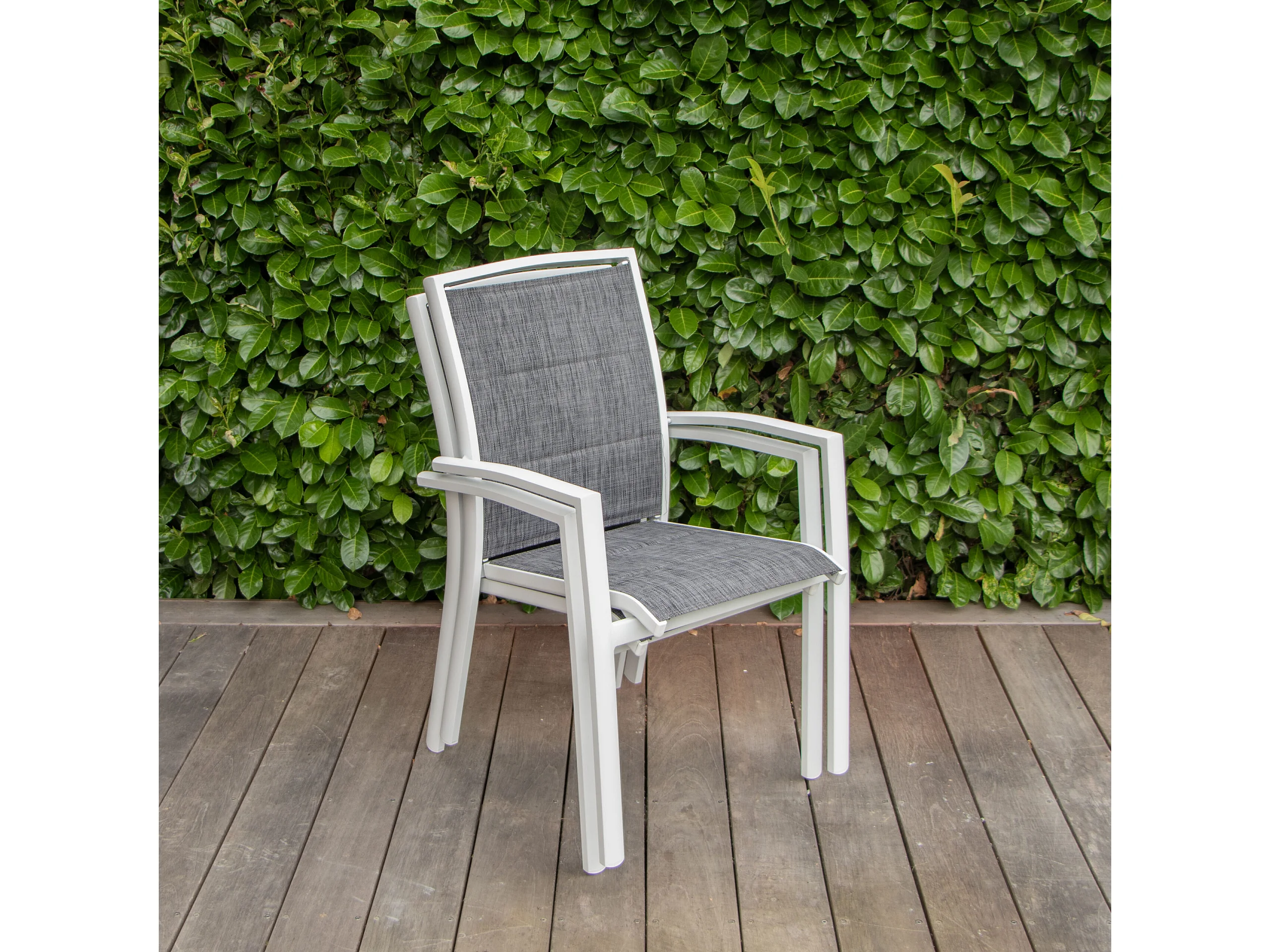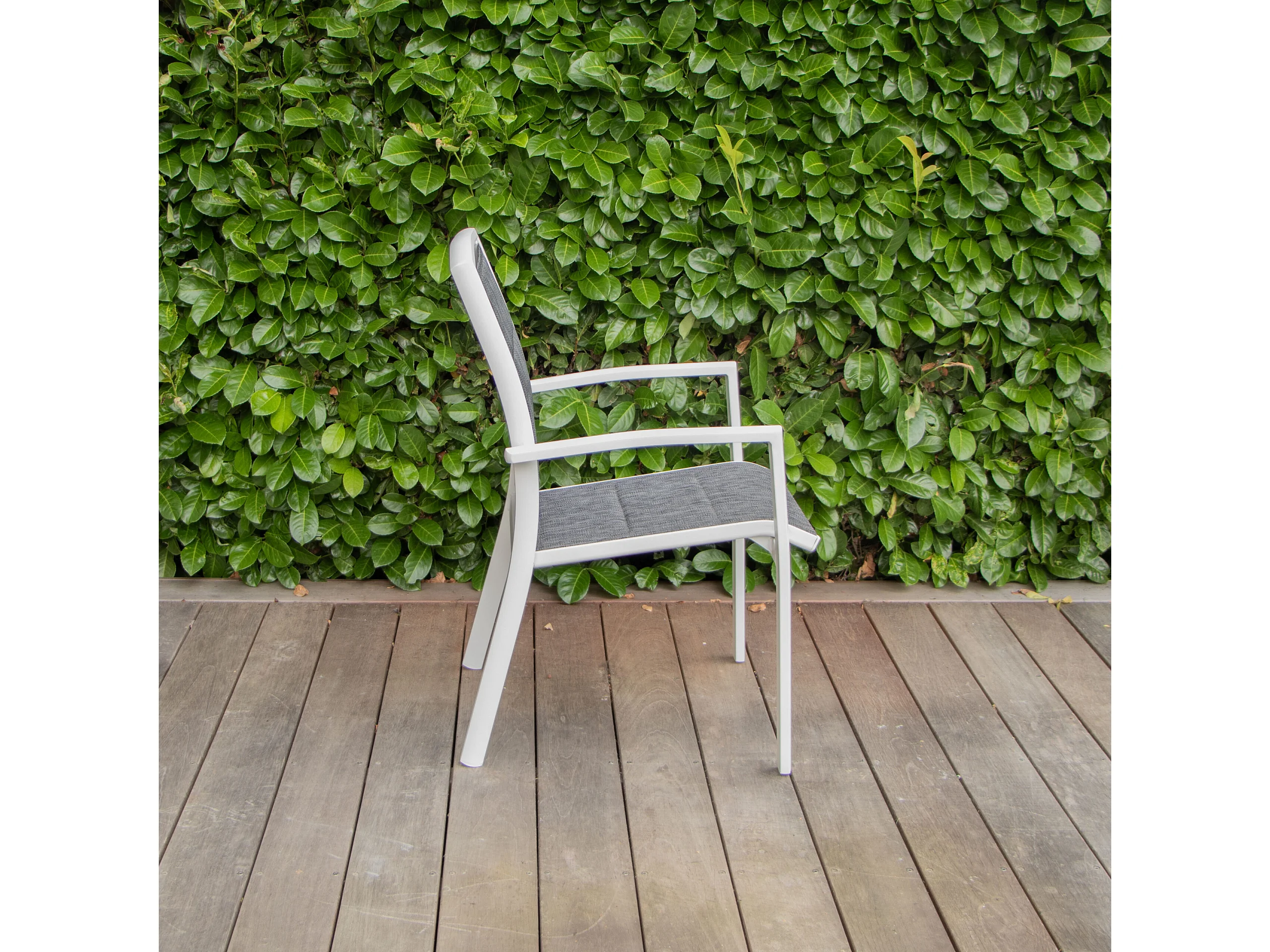 Fauteuil Modulo structure aluminium blanche, assise en textilène coloris gris chiné