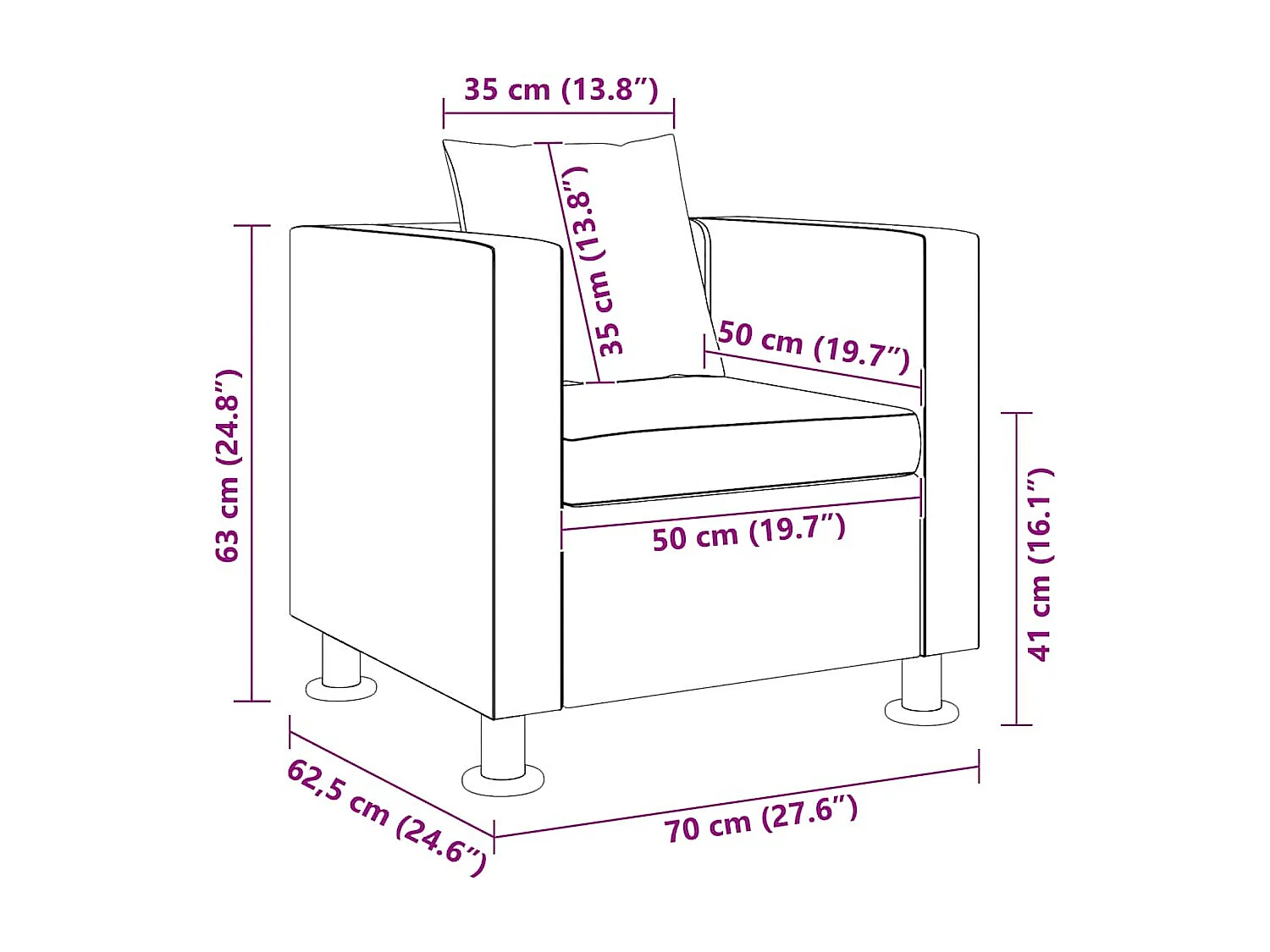 Fauteuil Noir 60 cm Similicuir
