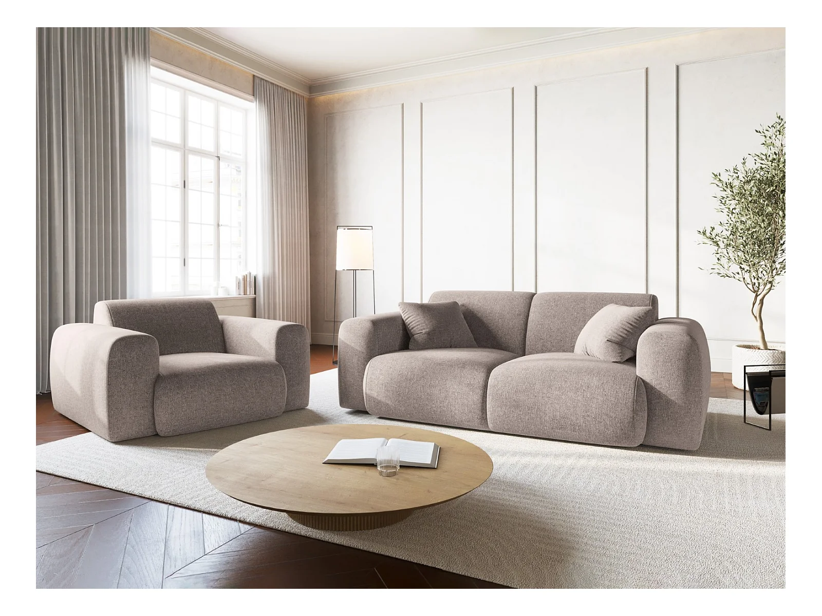 Cosmopolitan Design - Fauteuil "Nolio" 2 places en chenille beige - 105x95x72cm