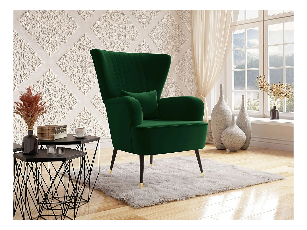 Fauteuil Orem 111, Vert, 103x82x85cm, Tapisserie, Pieds: Métal