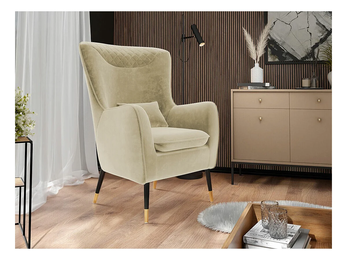 Fauteuil Orem 114, Brun clair, 103x79x87cm, Tapisserie, Pieds: Métal