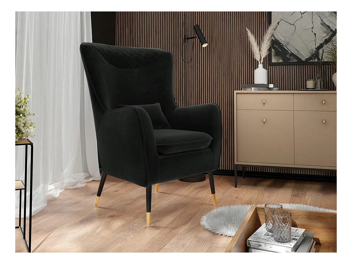 Fauteuil Orem 114, Noir, 103x79x87cm, Tapisserie, Pieds: Métal