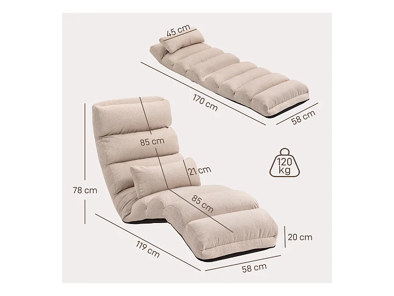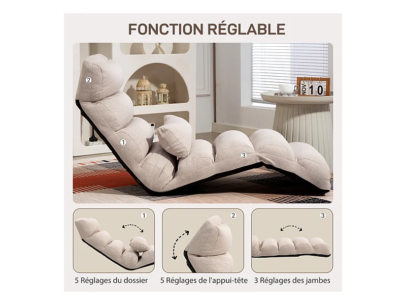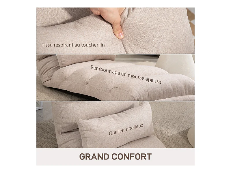 Fauteuil paresseux convertible LIZARO aspect lin beige