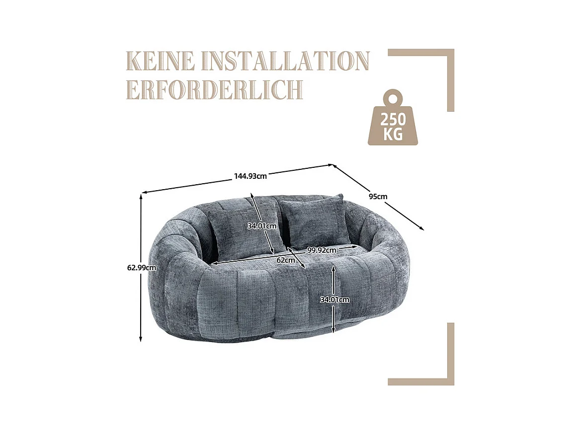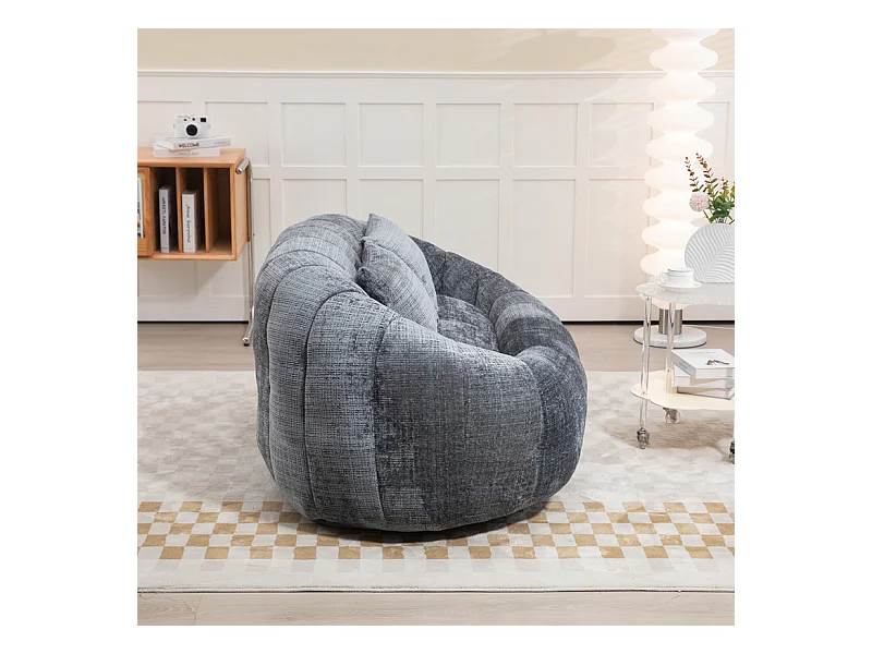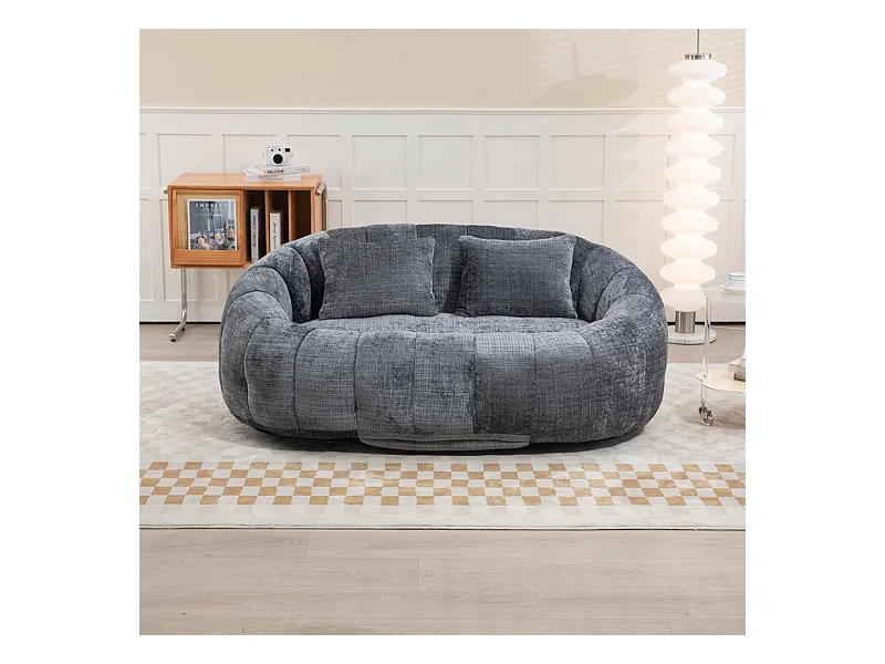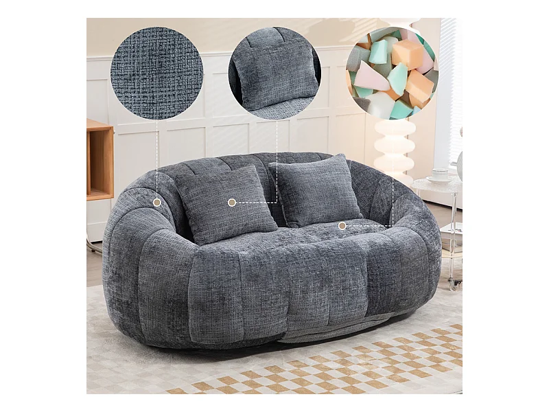 Fauteuil paresseux en Chenille - 2 places - avec 2 oreillers - 62cm profondeur d'assise - charge max 250kg - Gris