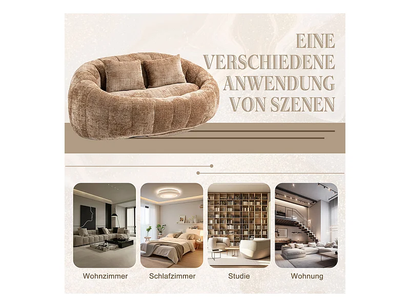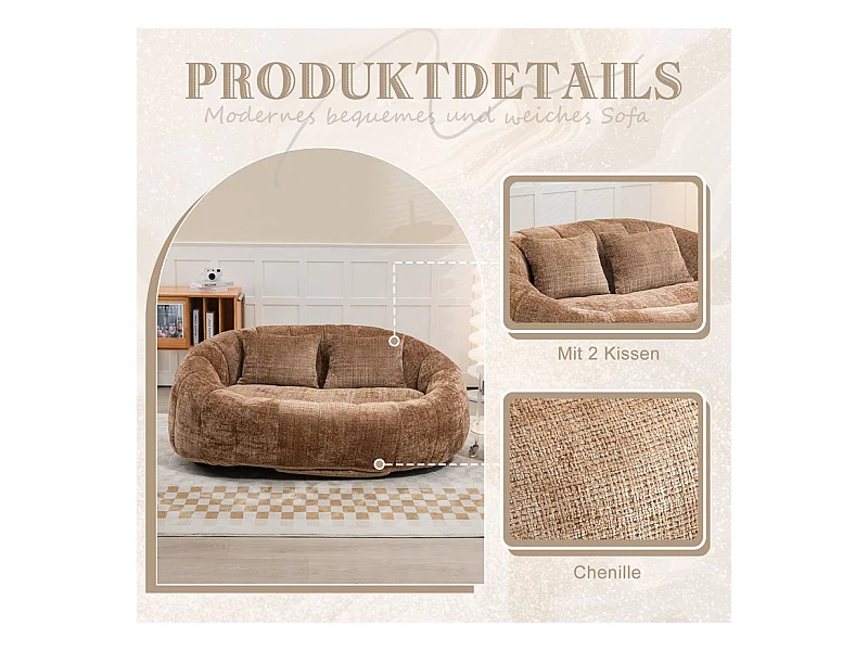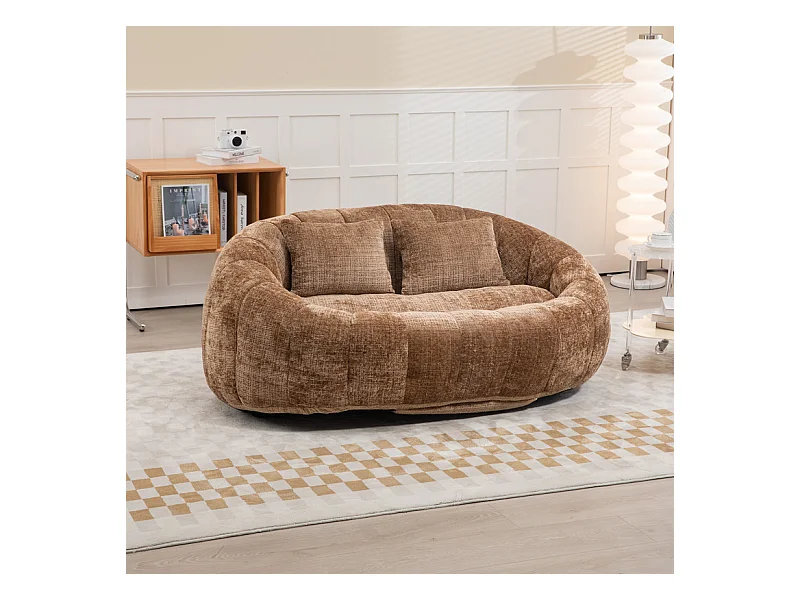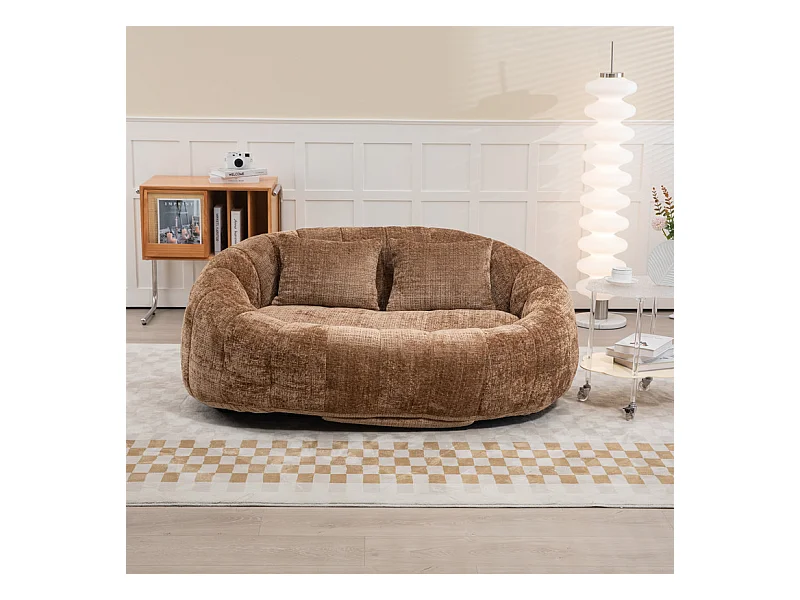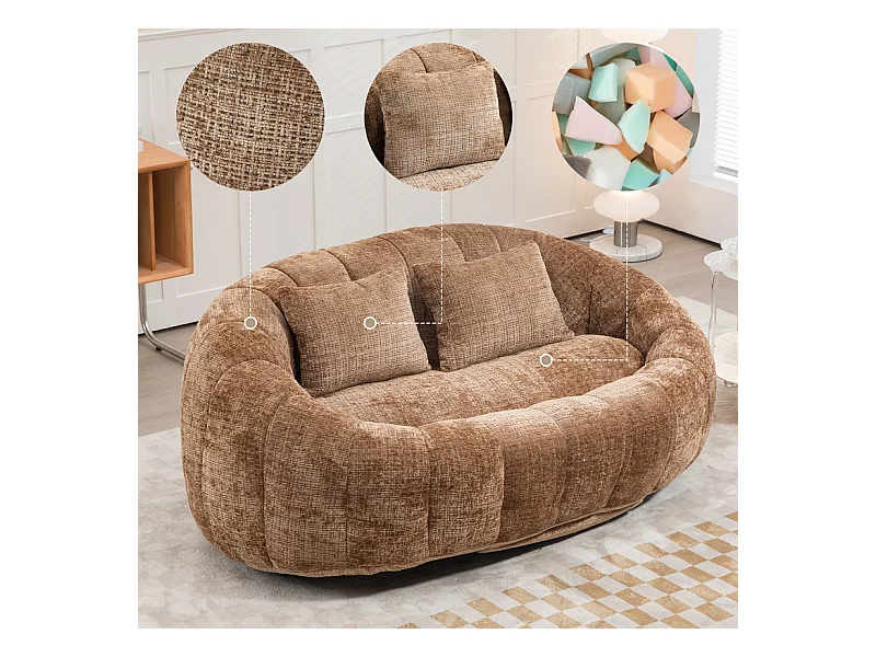 Fauteuil paresseux en Chenille - 2 places - avec 2 oreillers - 62cm profondeur d'assise - charge max 250kg - Marron